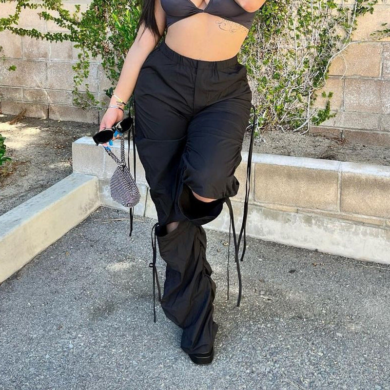 قم بتحديث مظهرك اليومي مع النمط العصري والمستقبلي لسروال هذه المرأة العالي الخصر مع قواطع الركبة. خيارات الألوان المحايدة تعمل بشكل جيد مع أي أعلى.