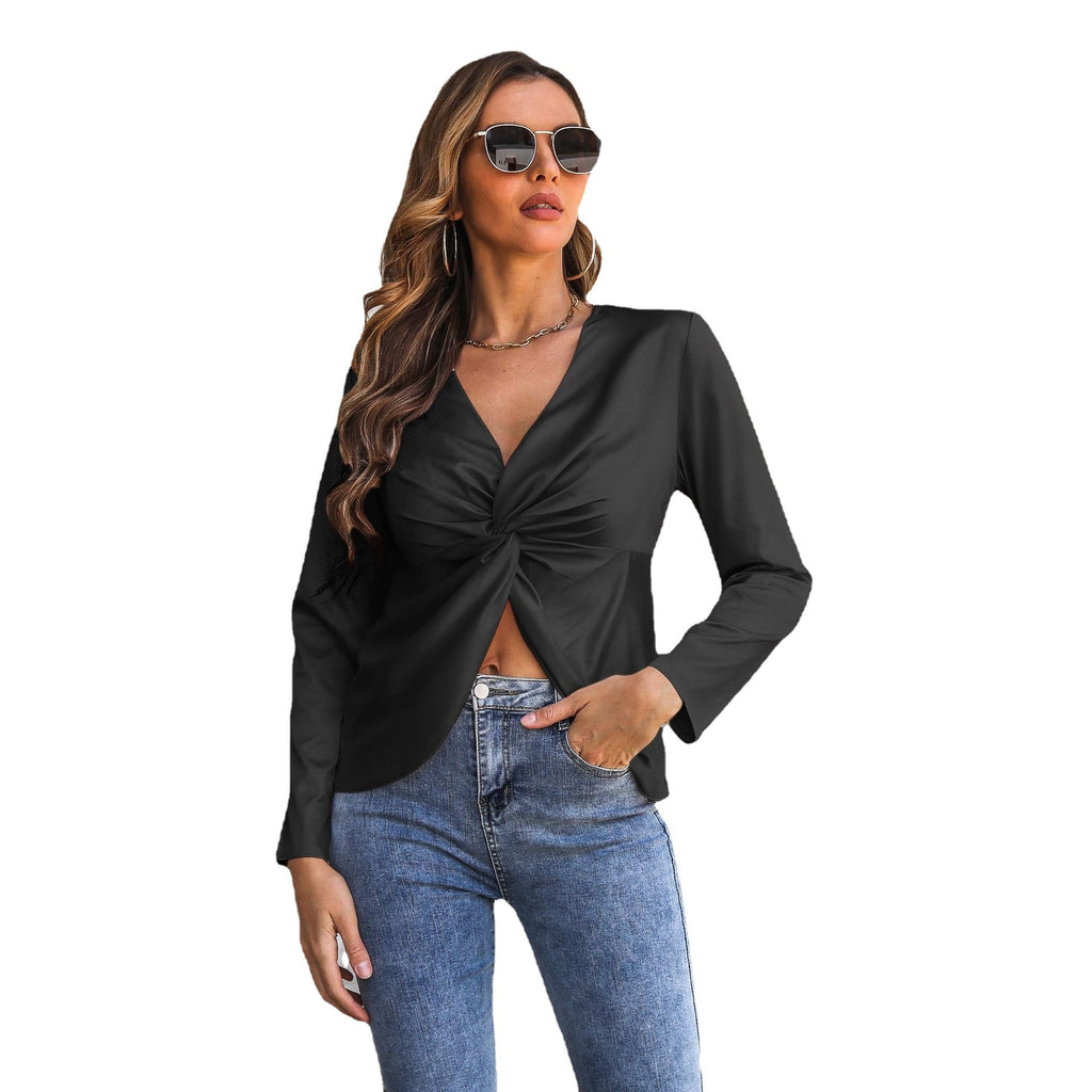 شكل بلوزة الرقبة V مع ثقب Peekaboo