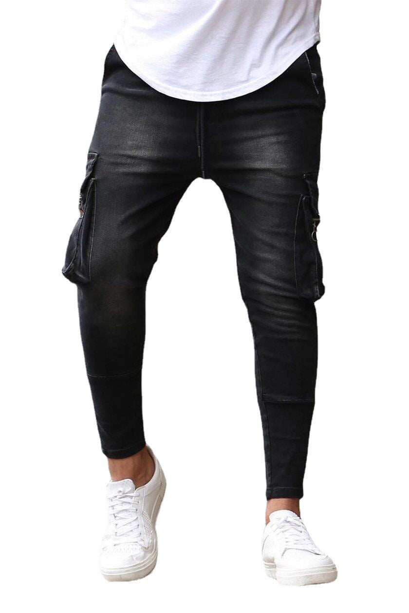 Herren-Denim-Jeans mit Cargotaschen und Reißverschlüssen