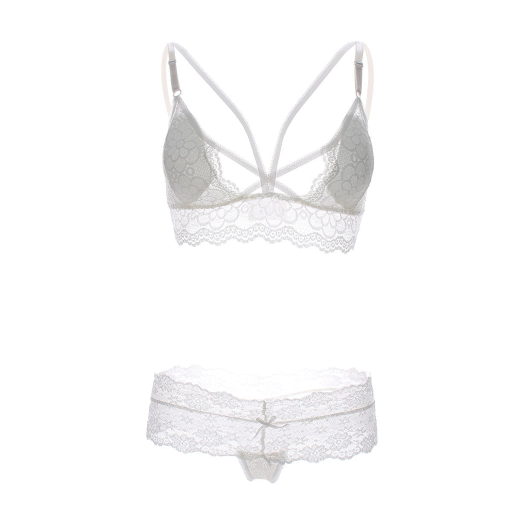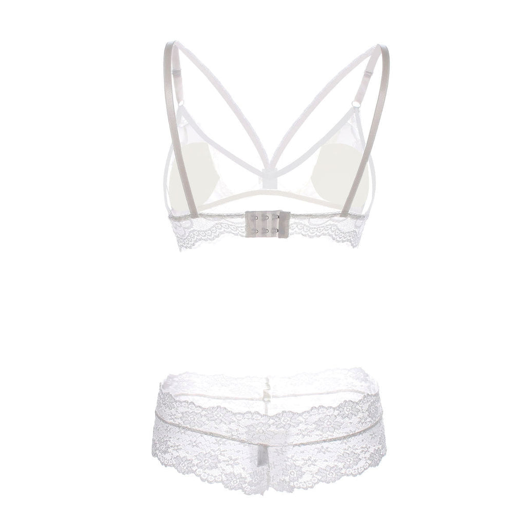Conjunto de sujetador y panty de encaje con correa de jaula