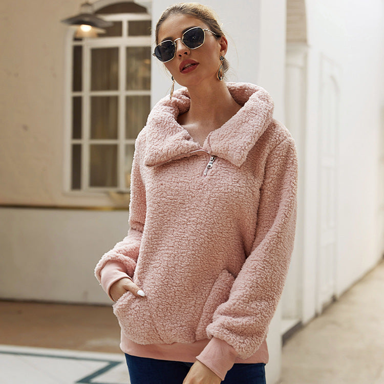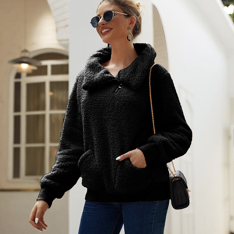 Manténgase abrigada y calentita con la chaqueta polar con bolsillos para mujer. La chaqueta tipo jersey presenta un cuello extragrande y viene con dos bolsillos grandes. Elija uno de los cinco colores.