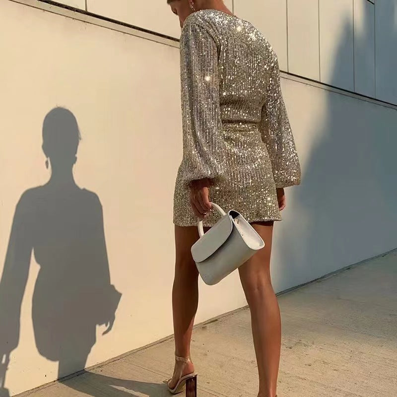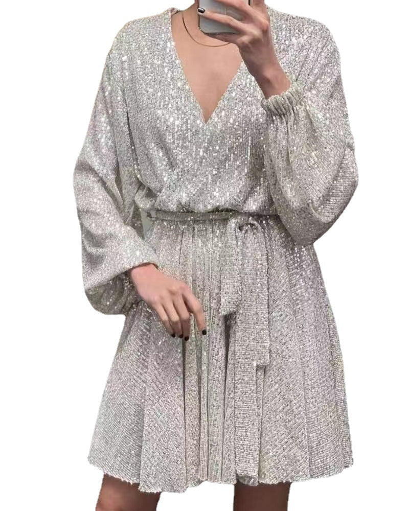 Dale un toque coqueto a tu atuendo nocturno con el vestido midi cruzado de manga larga con cuello en V para mujer. Este vestido corto presenta una tela fluida que se ajusta alrededor del cuerpo con el cinturón en el medio.