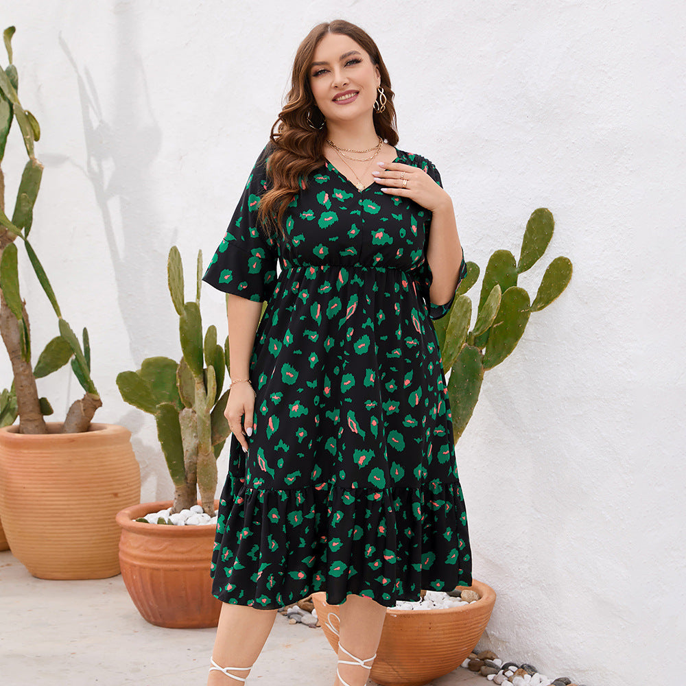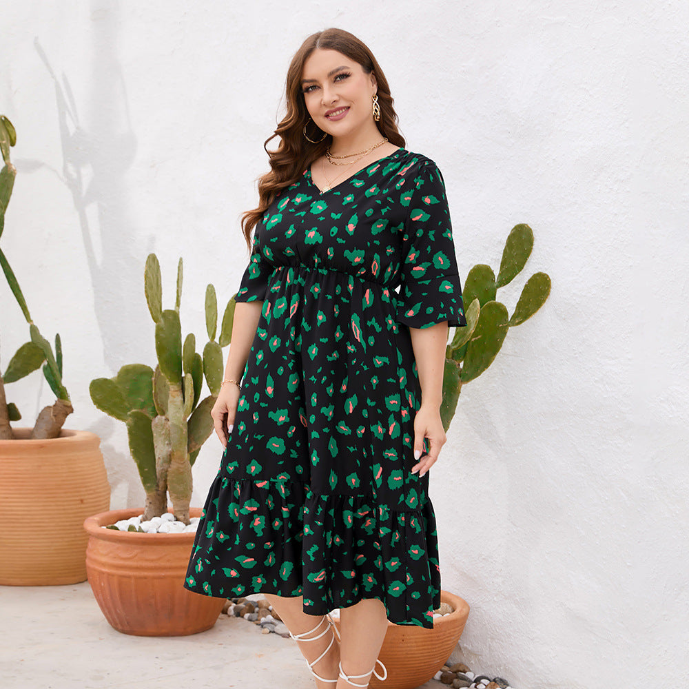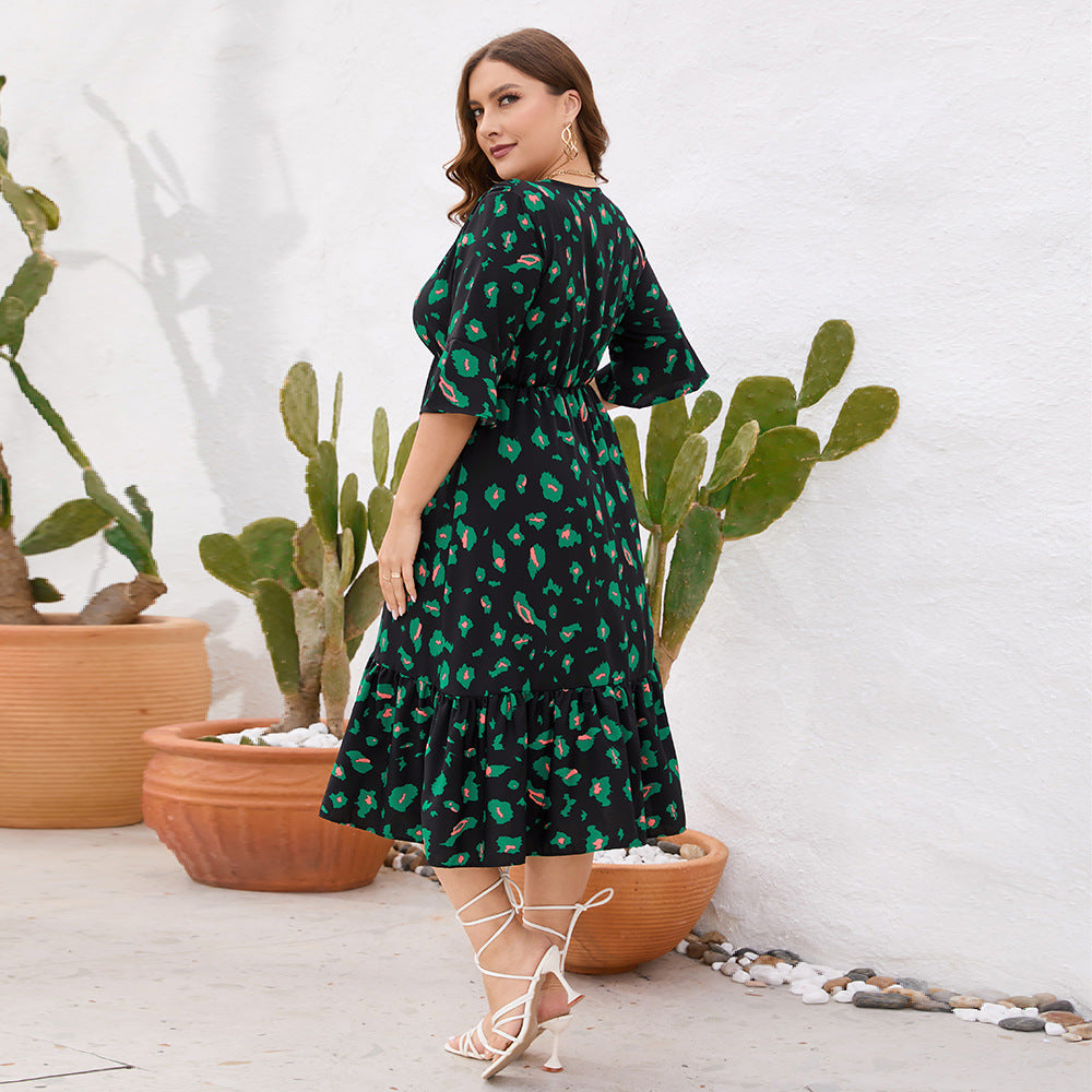 Women's Vibrant Animal Print Midi Dress with Three Quarter Length Sleeves