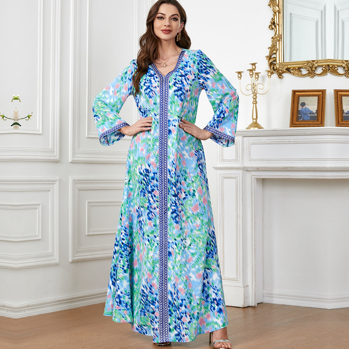 THEONE APPAREL Women's Long Sleeve Tie-Dye Style Maxi Dress