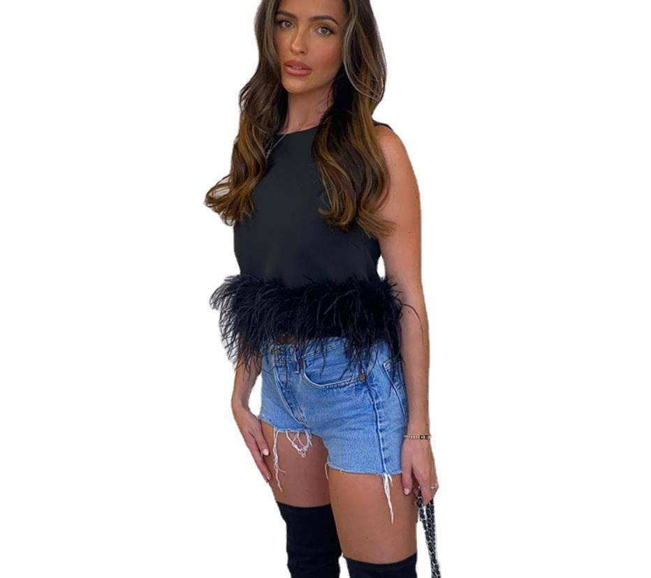 Débardeur sans manches avec une taille plumeuse