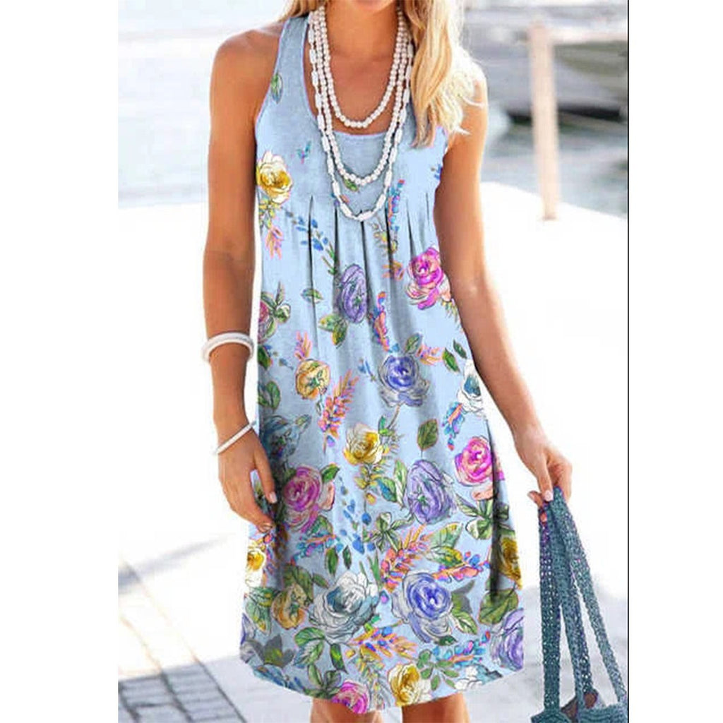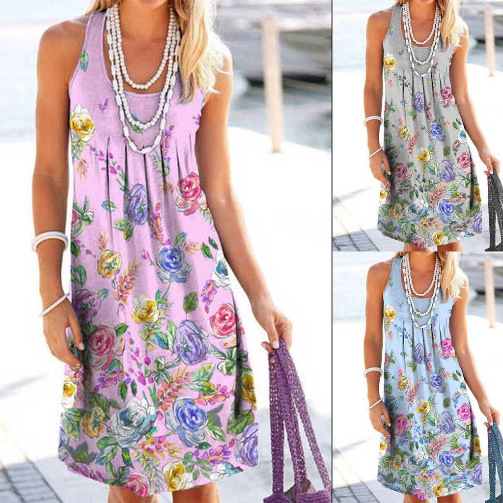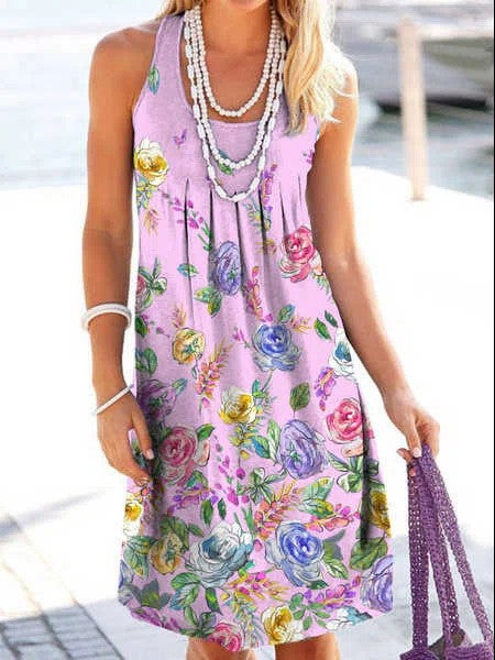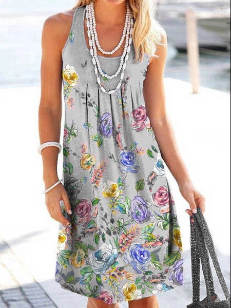 Robe florale sans manches en u-cou en vrac pour femmes