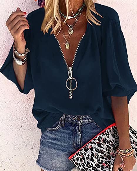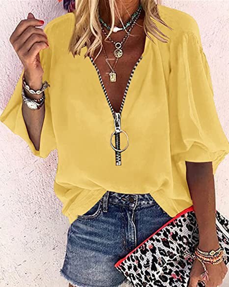 Se démarquez dans ce haut audacieux à manches à manches longues à glissière en V. Il est disponible en différentes couleurs.