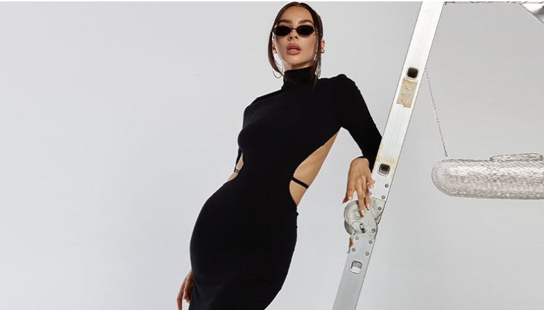 इश्कबाज और आकर्षक, लंबी आस्तीन के साथ इस महिलाओं की कटआउट मिडी ड्रेस आपको ध्यान देने के लिए निश्चित है। इसमें पीछे और तरफ कटआउट के साथ -साथ एक स्लिट भी है जो जांघ को चलाता है।