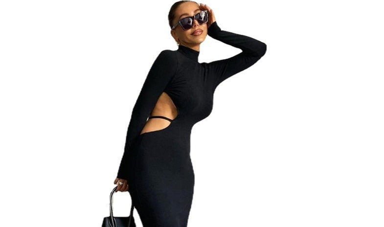 लंबी आस्तीन के साथ कटआउट मिडी ड्रेस