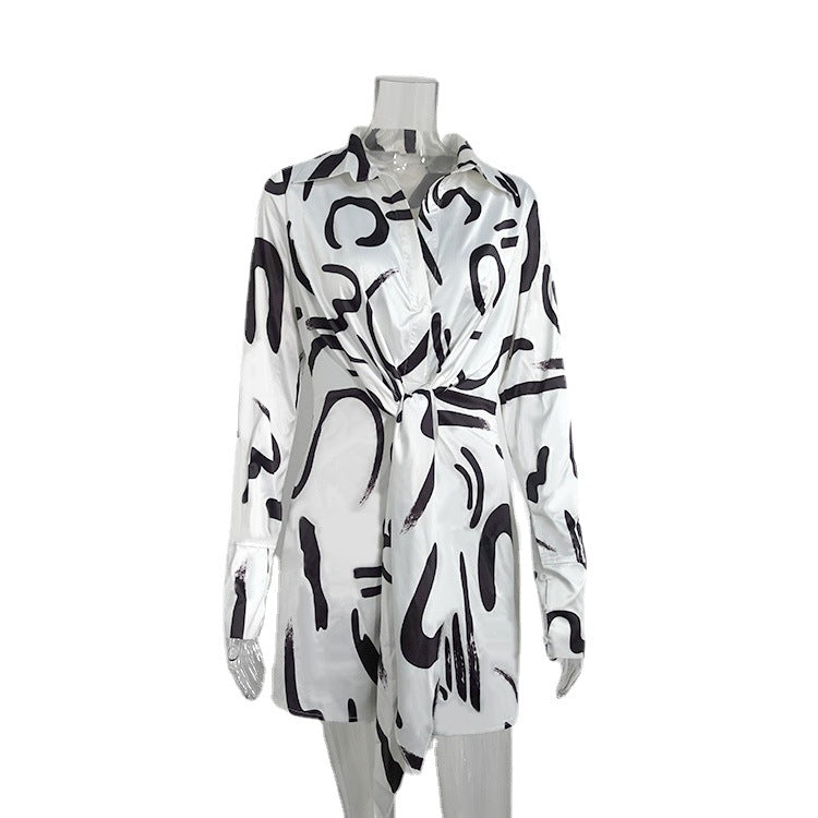 महिलाओं की बड़ी प्रिंट शर्ट स्टाइल मिनी ड्रेस