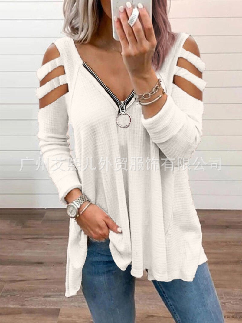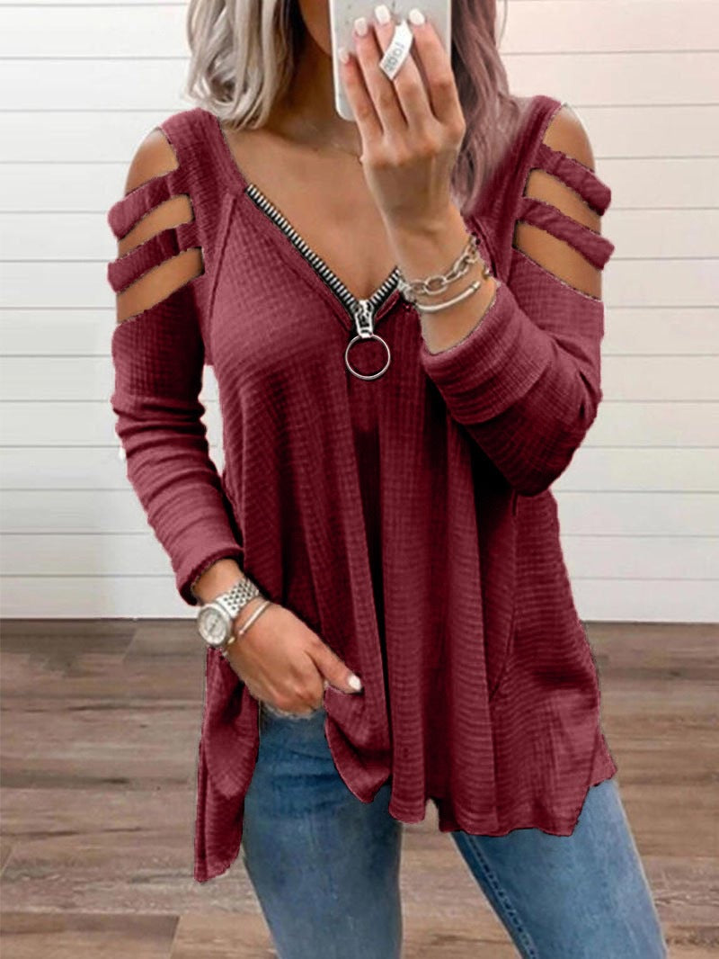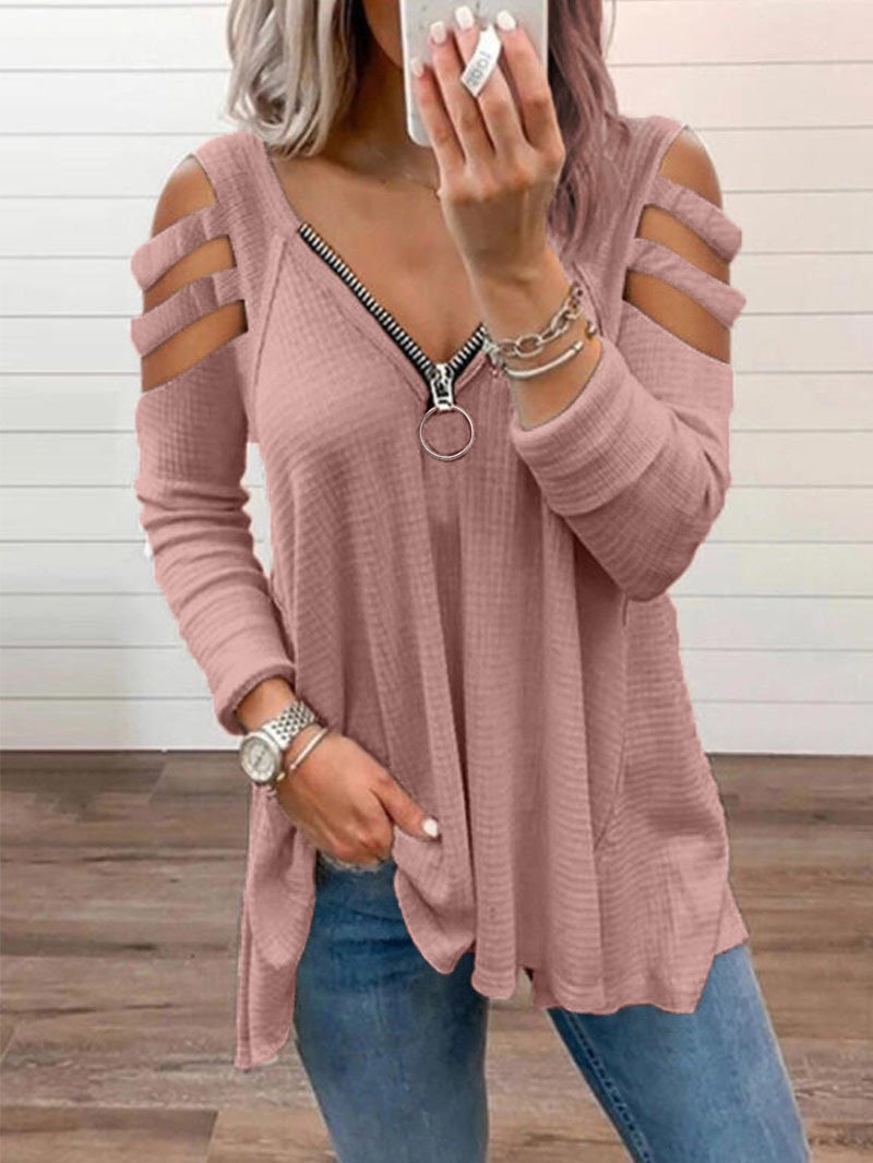 महिलाओं की लंबी आस्तीन स्ट्रैपी जिपर वी-नेक टॉप