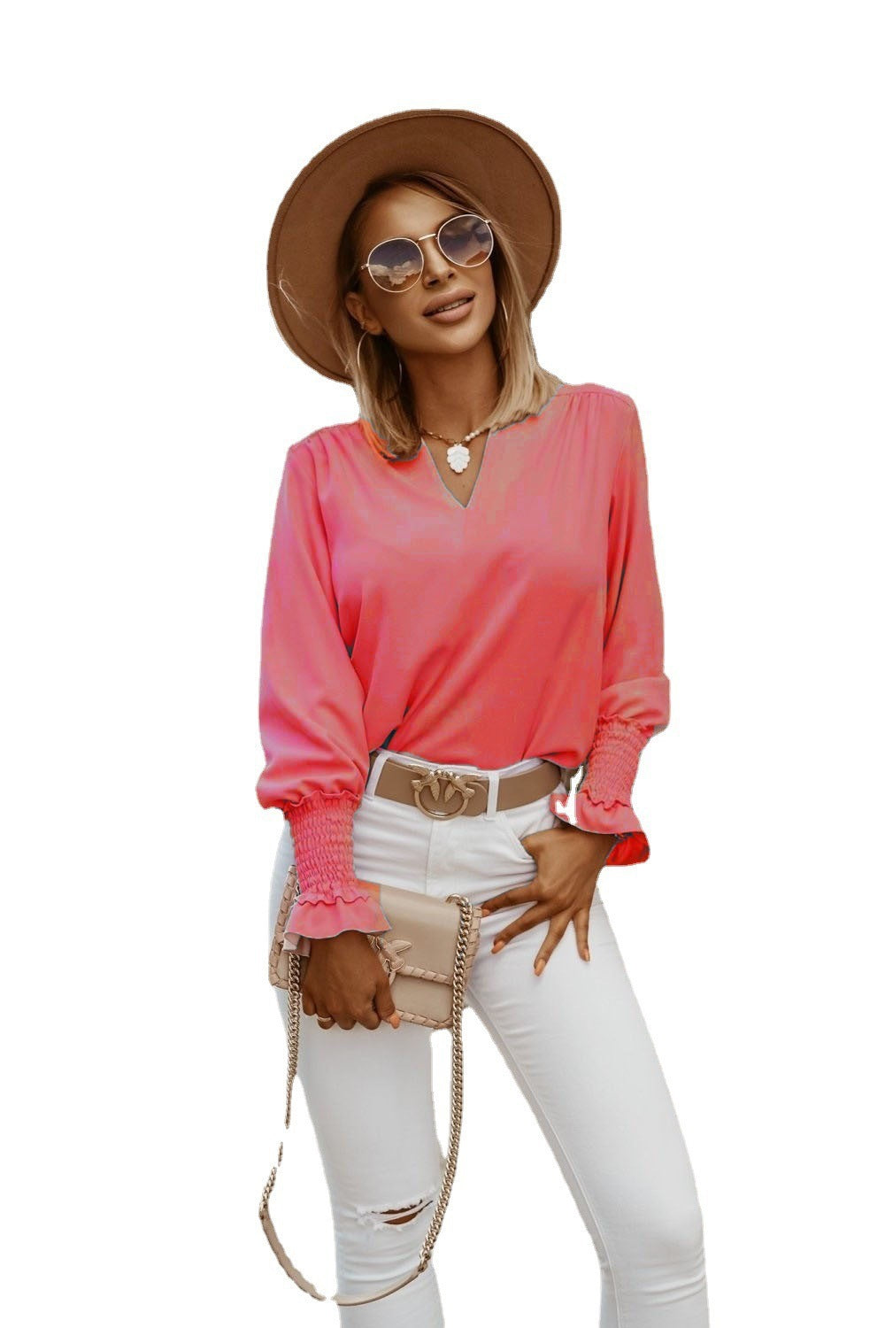 अपने मामूली वी-नेक, रेशमी सामग्री और बेल आस्तीन के साथ, यह ढीली फिटिंग सिल्की वी-नेक रुच्ड लॉन्ग स्लीव टॉप में सही मात्रा में विस्तार है। यह किसी भी बोतलों के अनुरूप विभिन्न रंगों में आता है।
