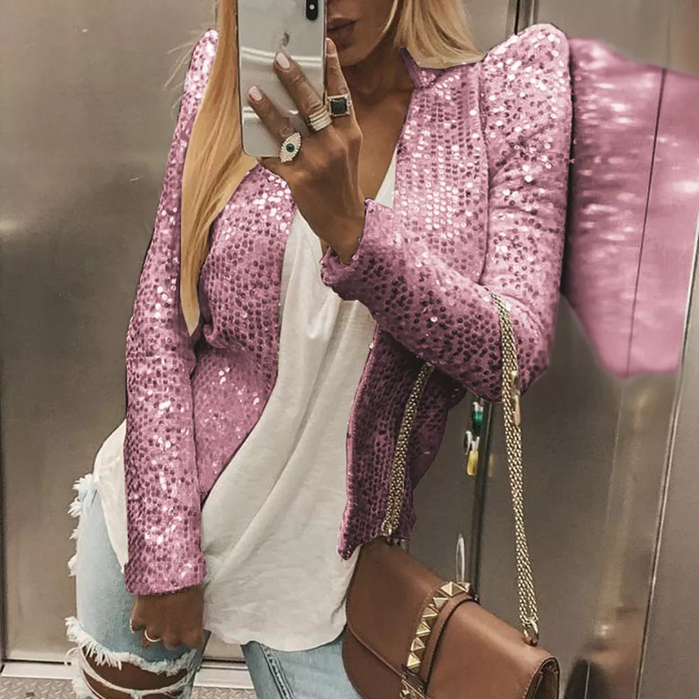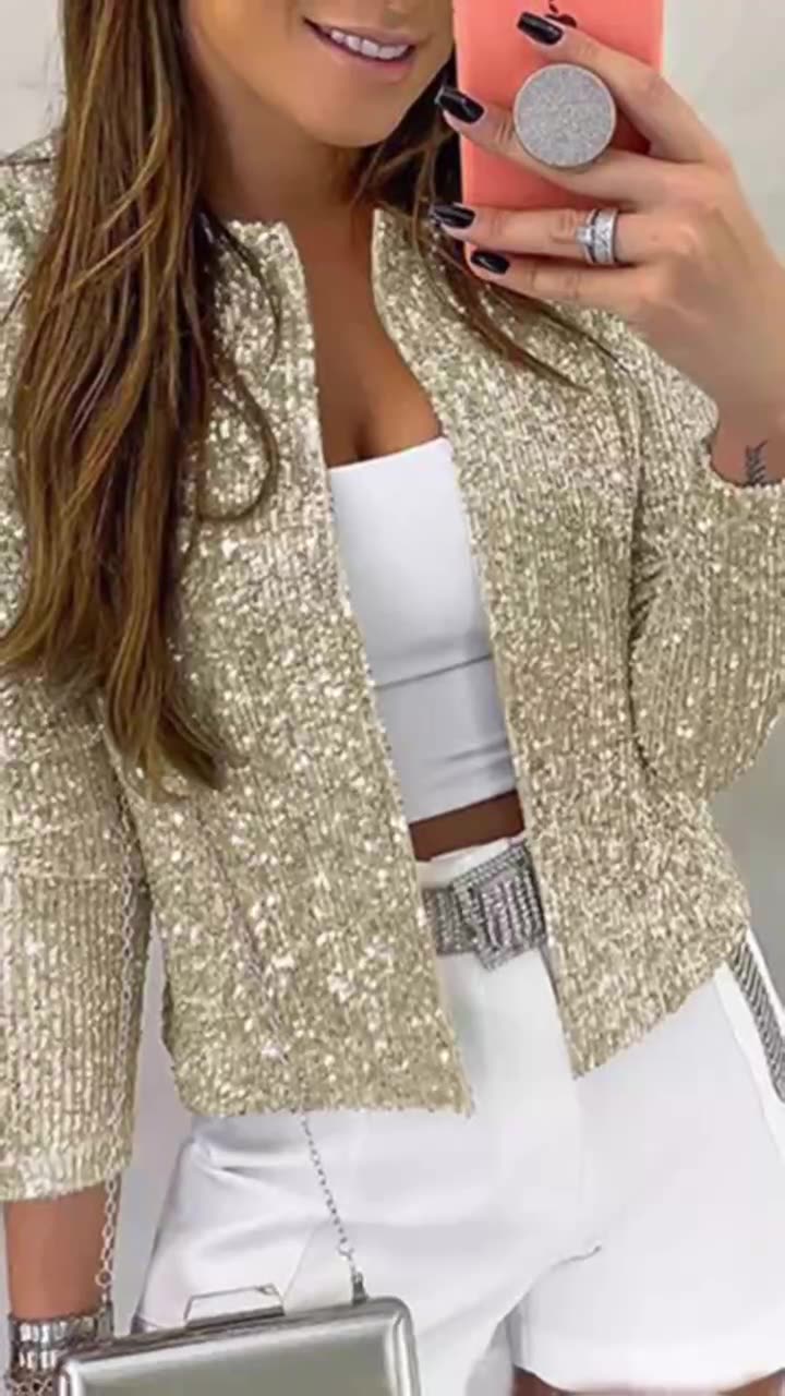 Curi pertunjukan dalam pengaturan apa pun yang mengenakan jaket blazer berkilau yang mewah dan glamor yang menampilkan lengan panjang tiga perempat dan bahu bengkak. Muncul dalam lima opsi warna yang berbeda untuk Anda pilih.