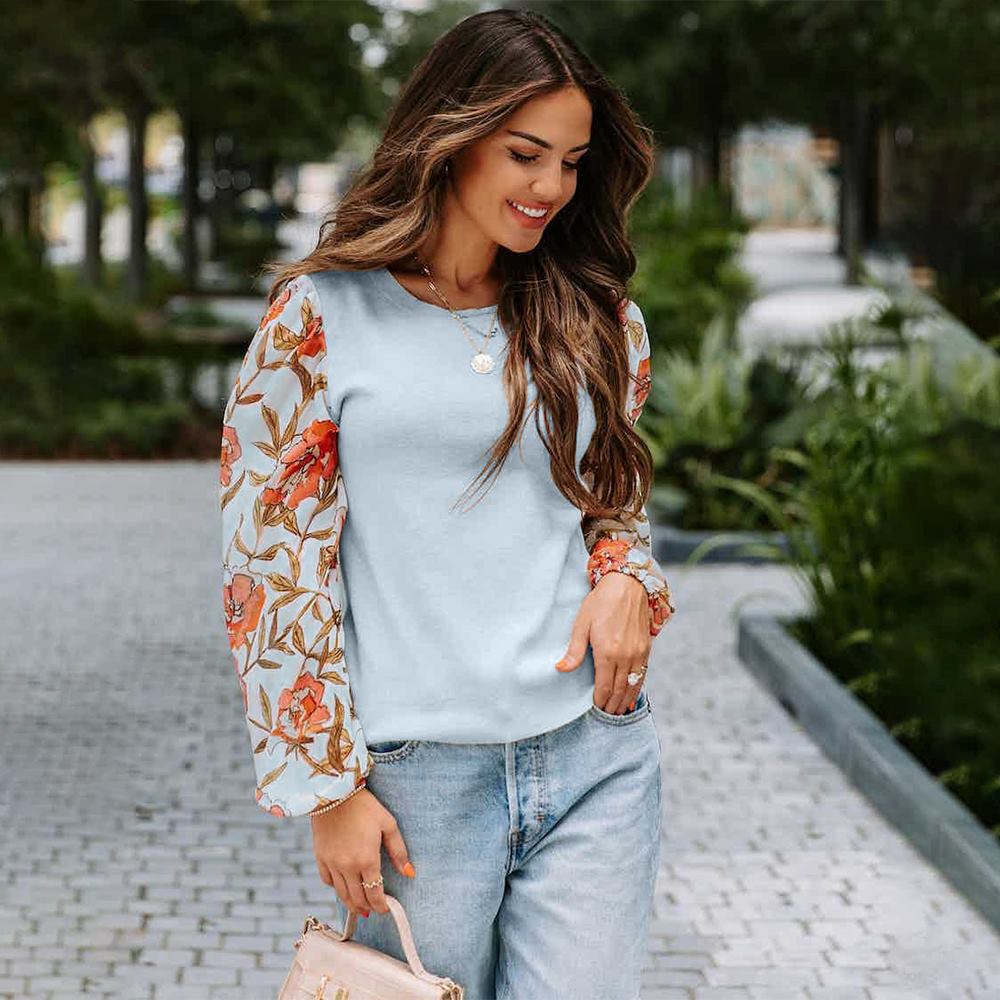 Kemeja lengan panjang dengan lengan baju longgar bunga