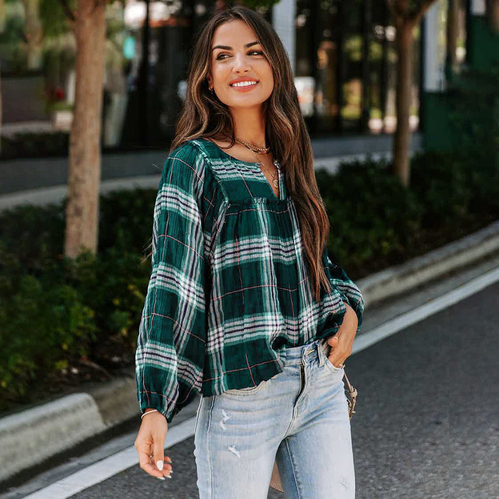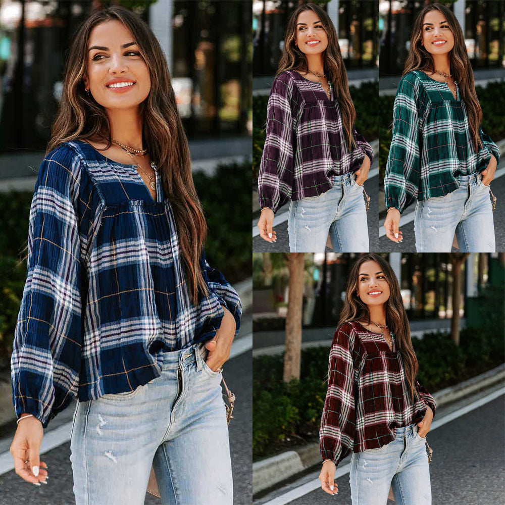 Dapatkan tren flanel dengan kemeja lengan panjang kotak-kotak hangat wanita ini dengan v-neck yang menampilkan pola kotak-kotak pilihan Anda di seluruh kain. Longgar pas dan mudah untuk bergerak.