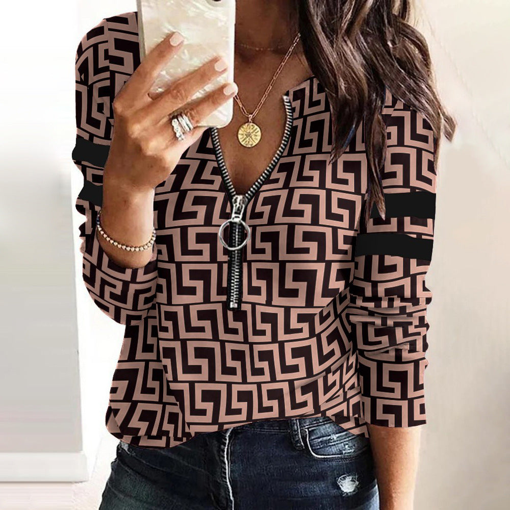 Kemeja logo lengan panjang dengan penutupan ritsleting logam