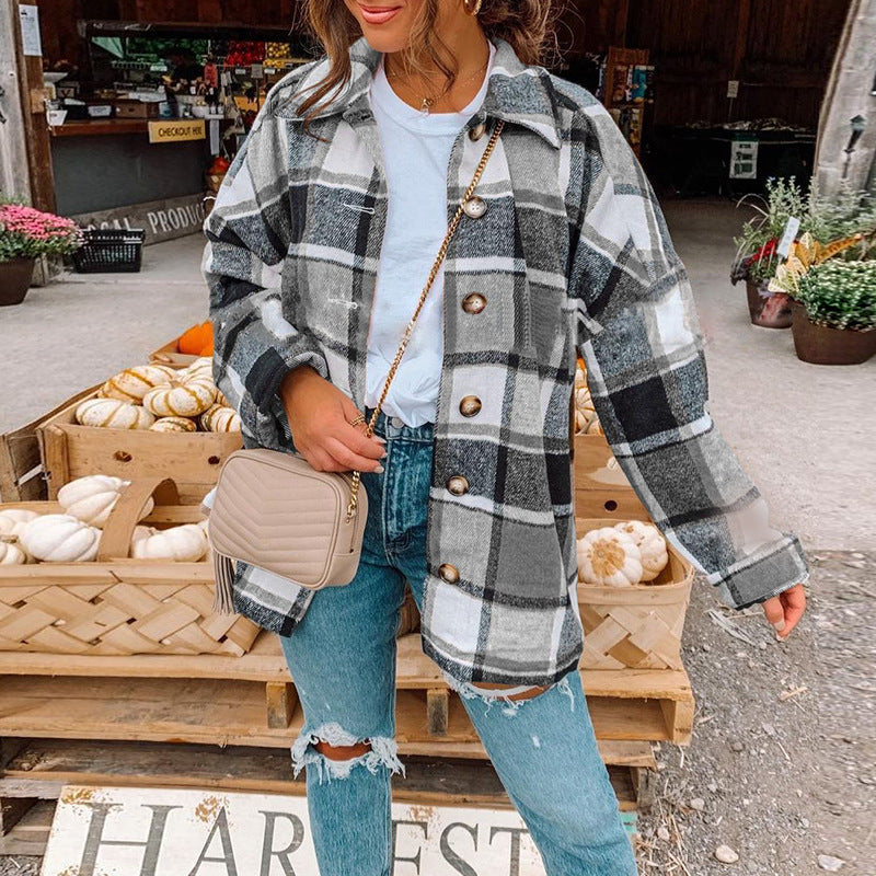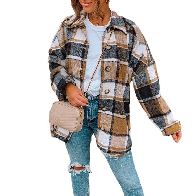 Bersiaplah untuk jatuh dengan mengenakan overshirt kotak -kotak wanita dengan kancing besar dekoratif. Kemeja ini hadir dalam berbagai kombinasi warna kotak -kotak dan fitur tombol besar untuk kontras dengan itu. Ini memiliki lengan yang longgar dan nyaman.