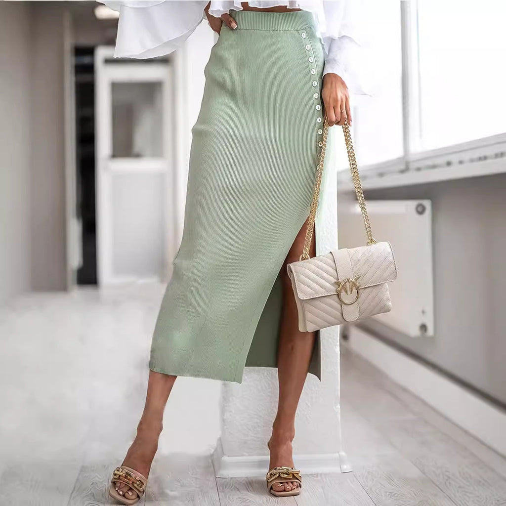 Rok berusuk ini memiliki pola garis cekung yang halus untuk tekstur tambahan. Nyaman dan serbaguna, sangat ideal untuk pakaian santai, pakaian kantor, atau layering di musim yang lebih dingin.