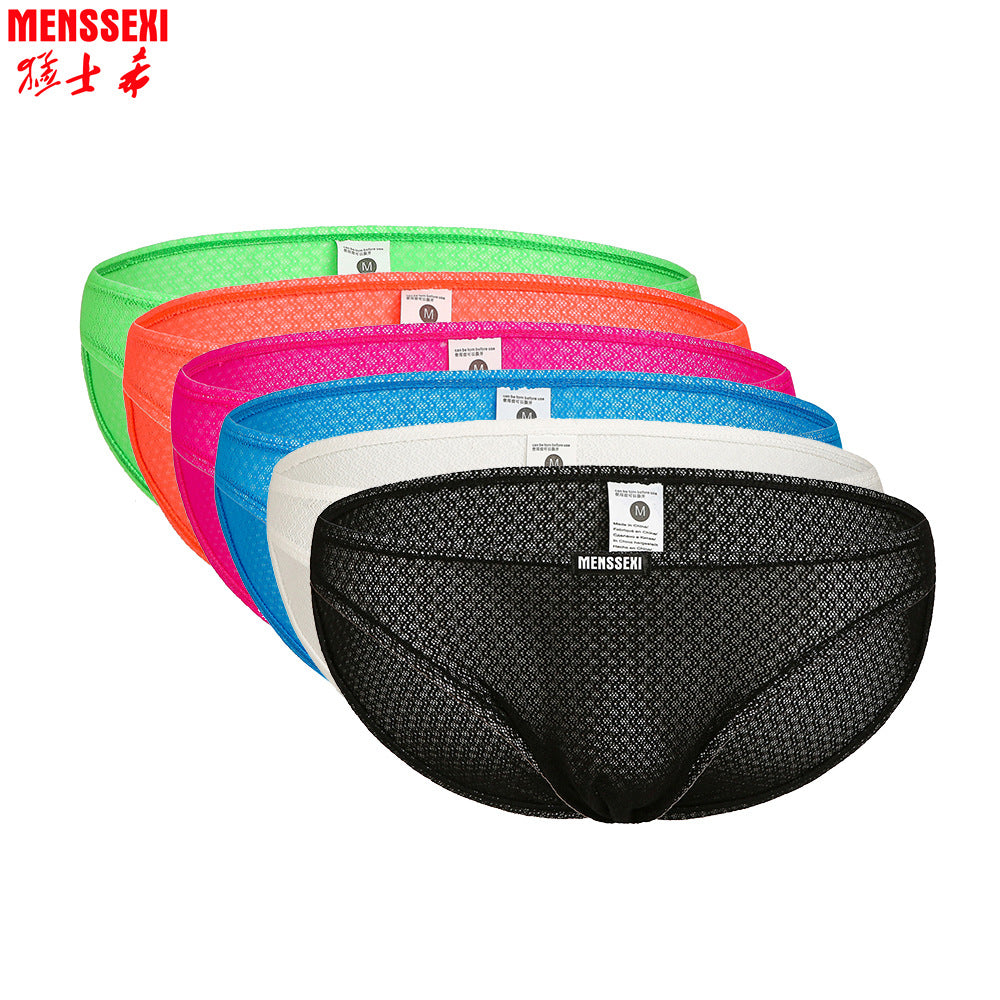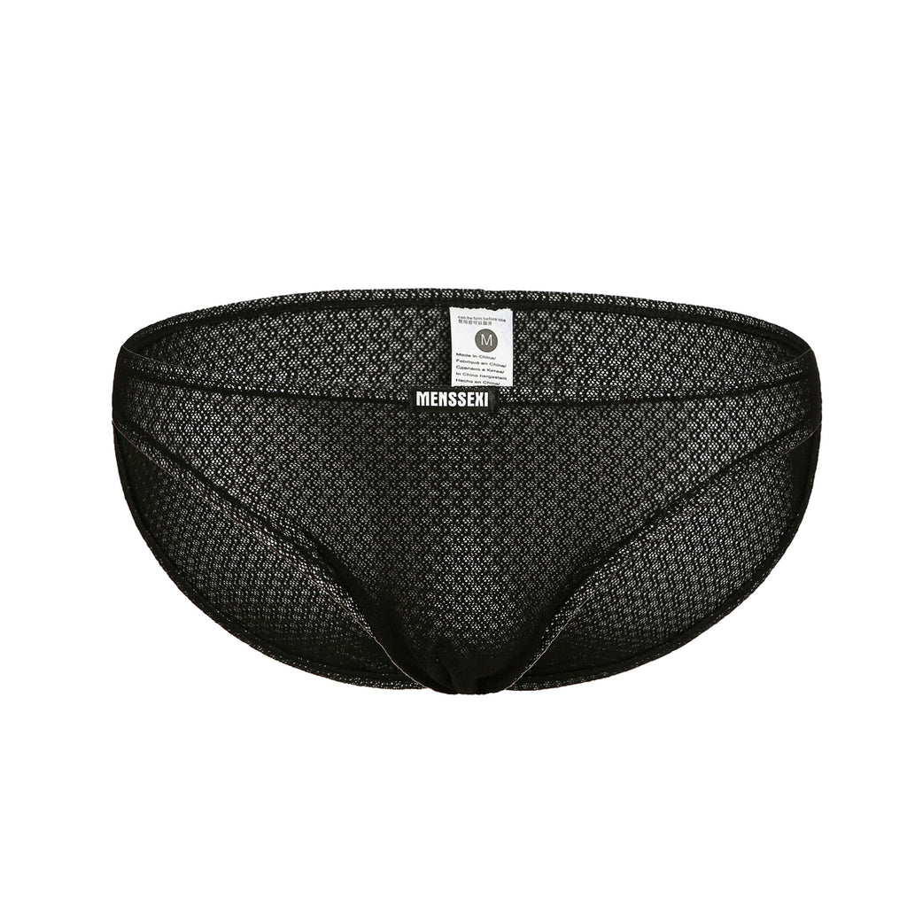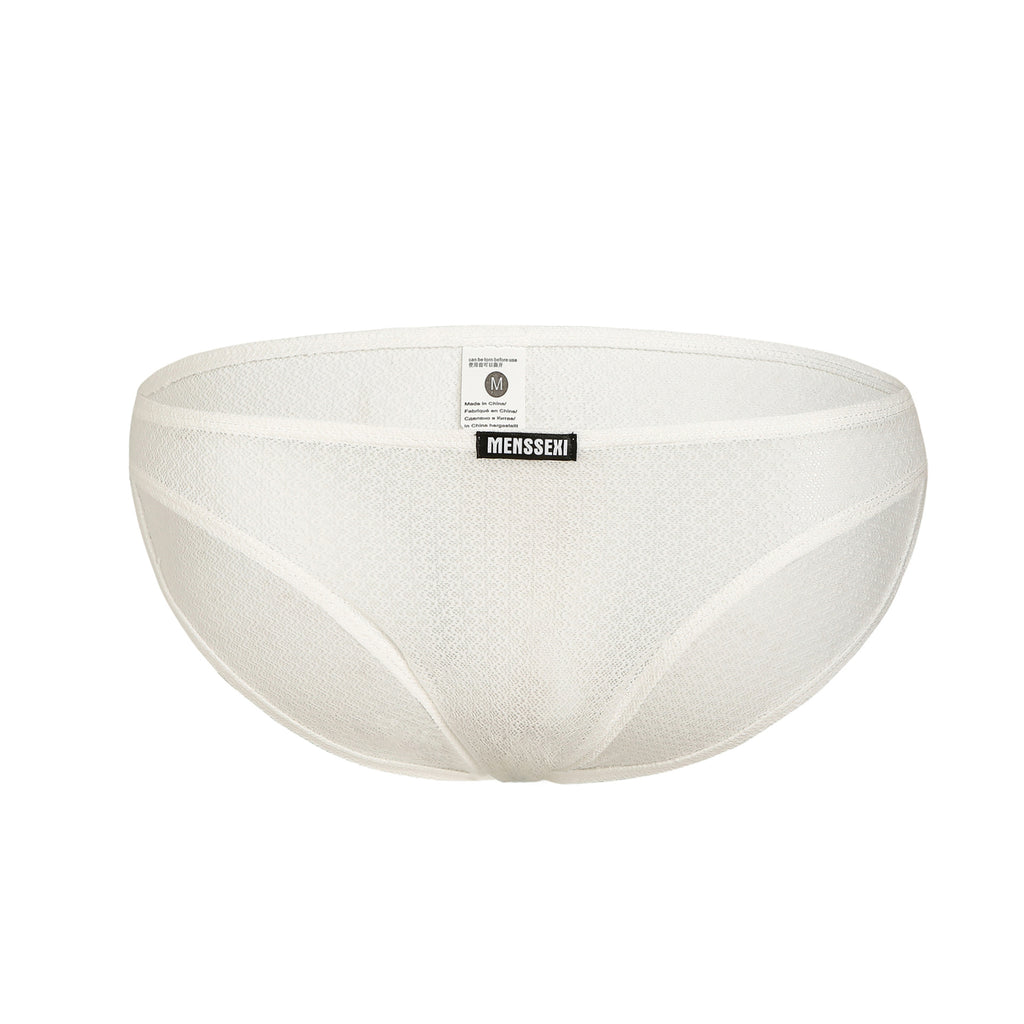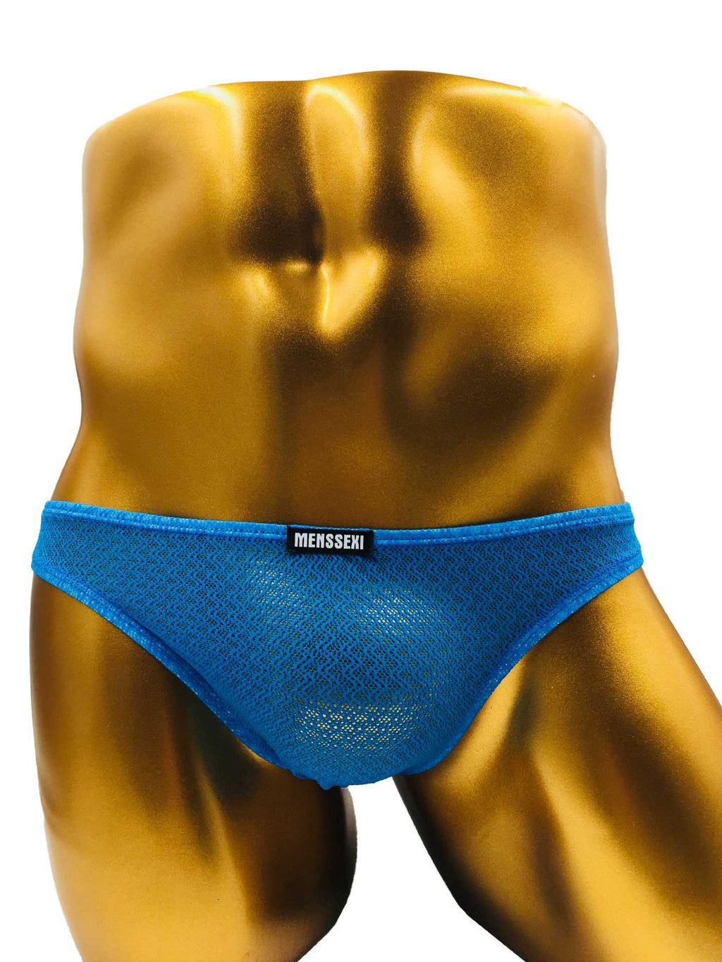 フルカバレッジデザインと、色の選択に柔らかく透明な生地を特徴とするレースの透明な男性の下着で遊び心のある側面を見せてください。