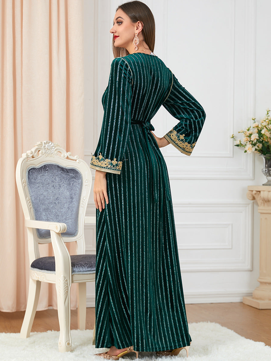 Women's Long Sleeve Vertical Stripe Green Maxi Dress