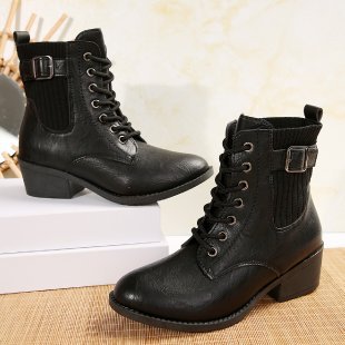 Women's Warm Winter Causal Boots with Elastic Side and Buckles