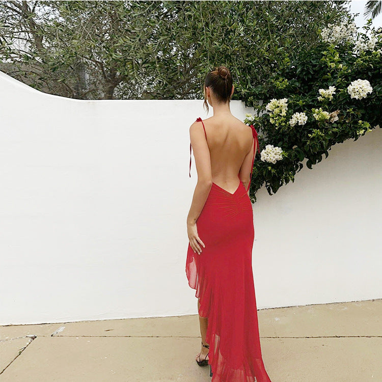 Maxi -jurk voor dames met uitsparing in het middenrif en dijgleuf