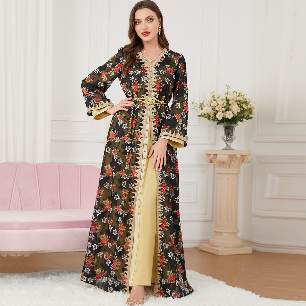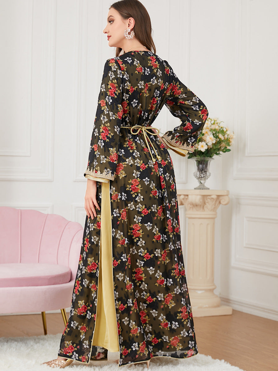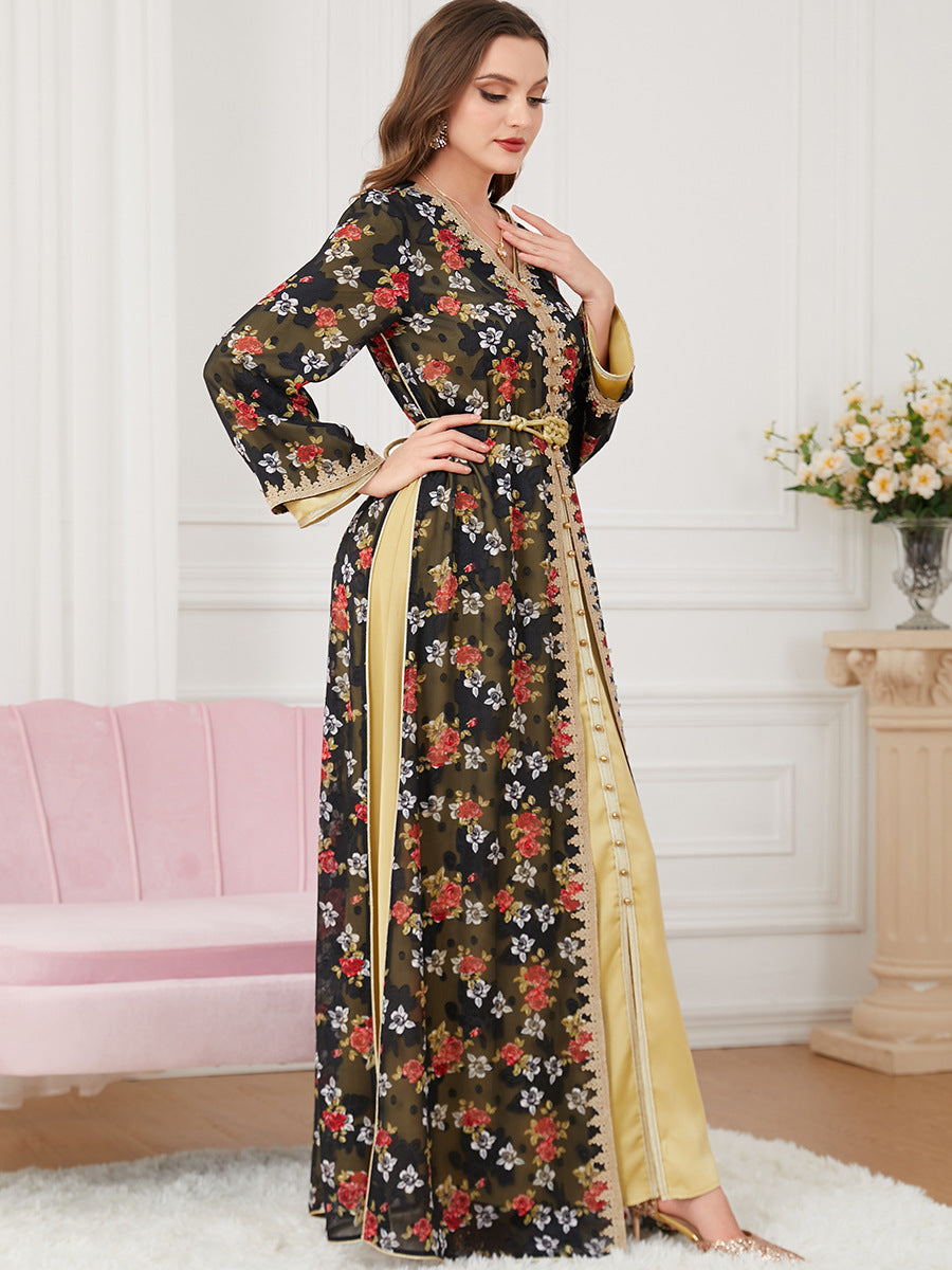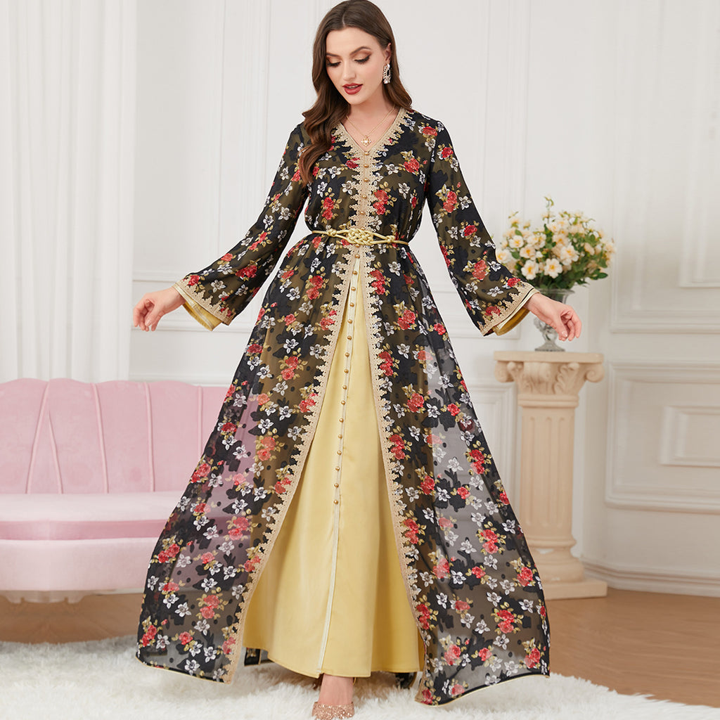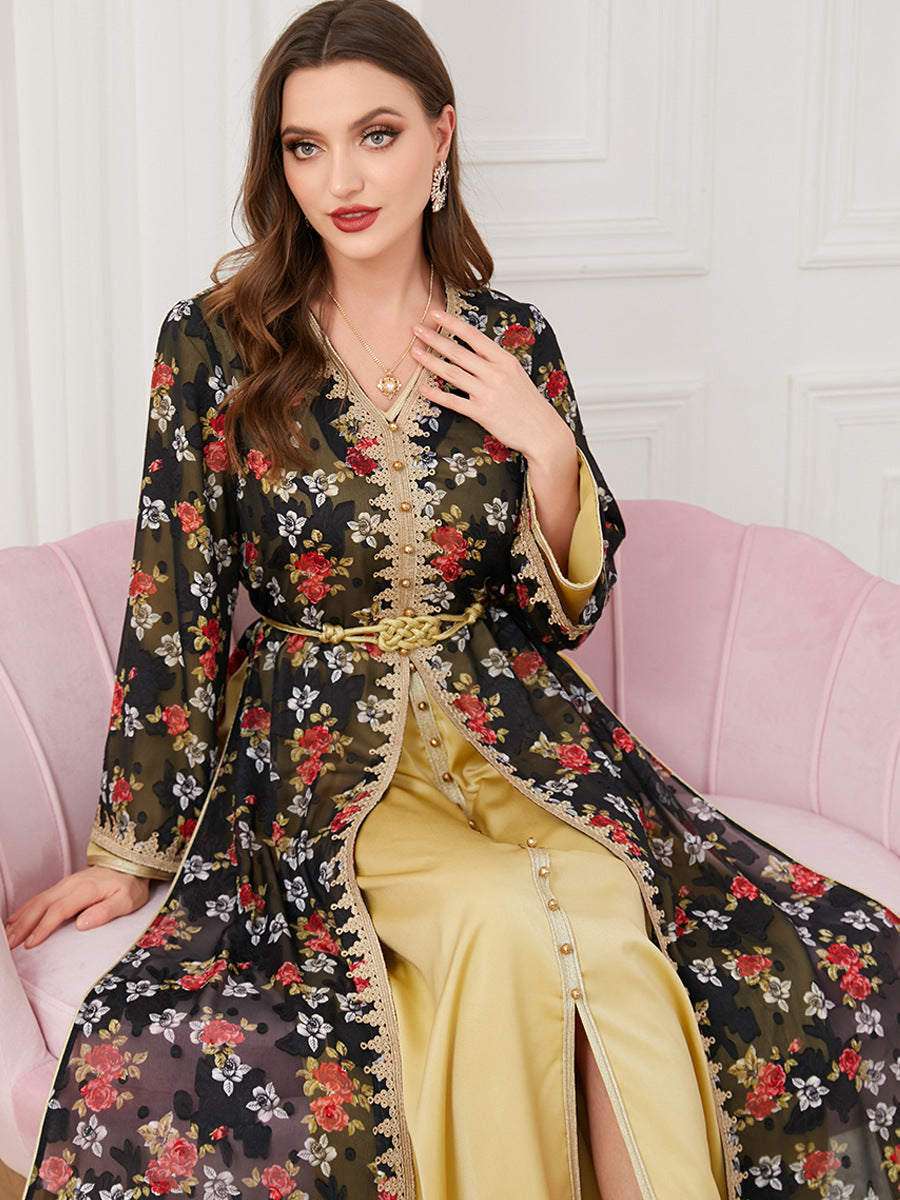Als je de gewaad van de lange mouw met lange mouwen met lange mouwen draagt, zul je er bij elke functie verfijnd uitzien. Deze jurk heeft gouden hoogtepunten om het een koninklijke afwerking te geven.