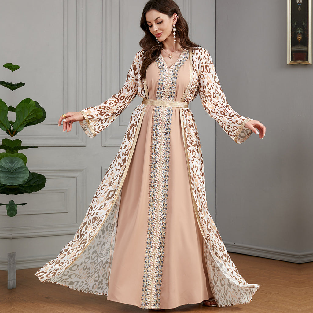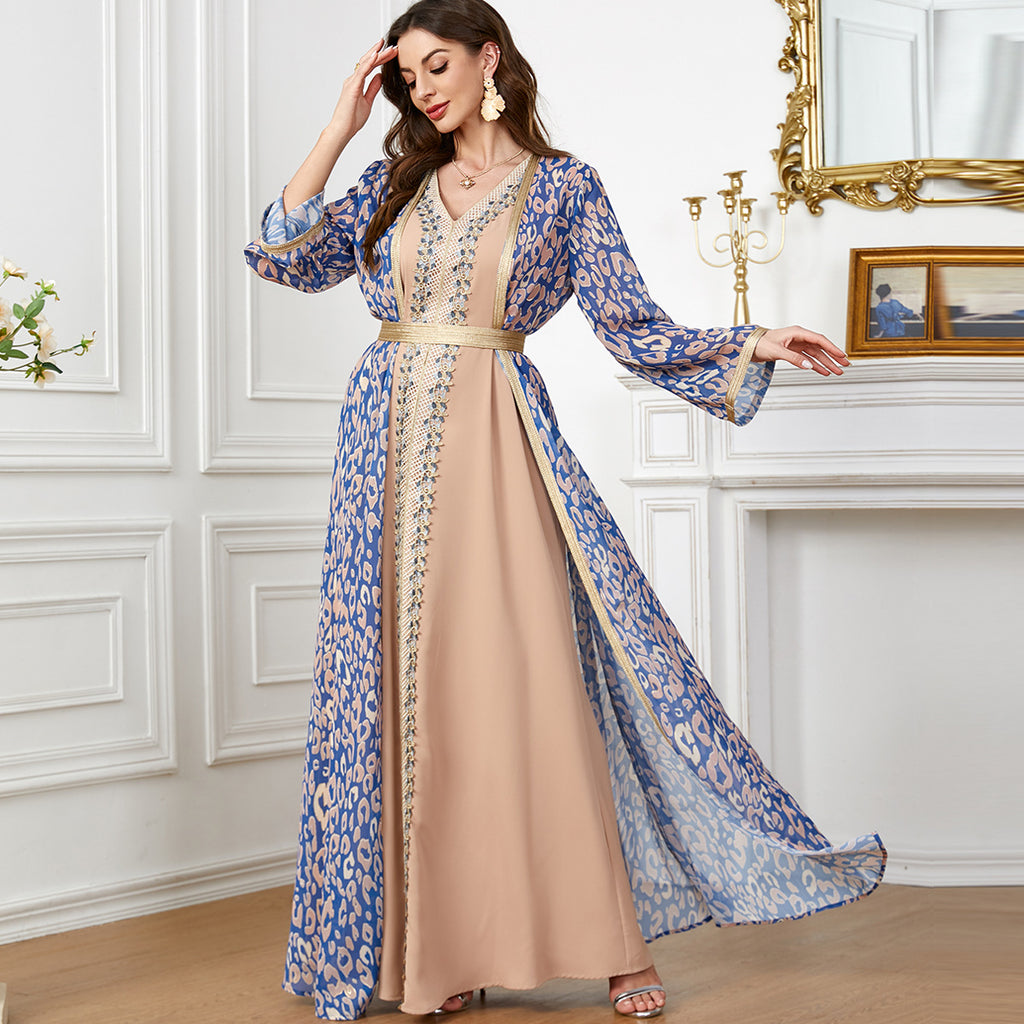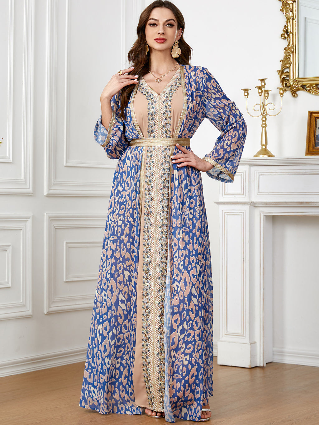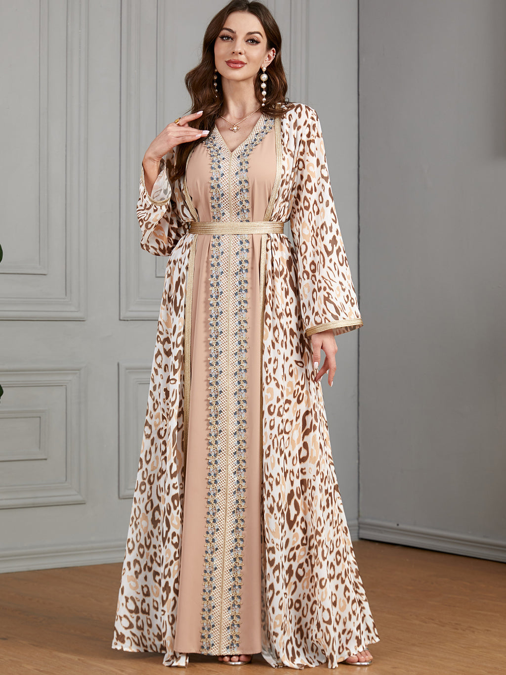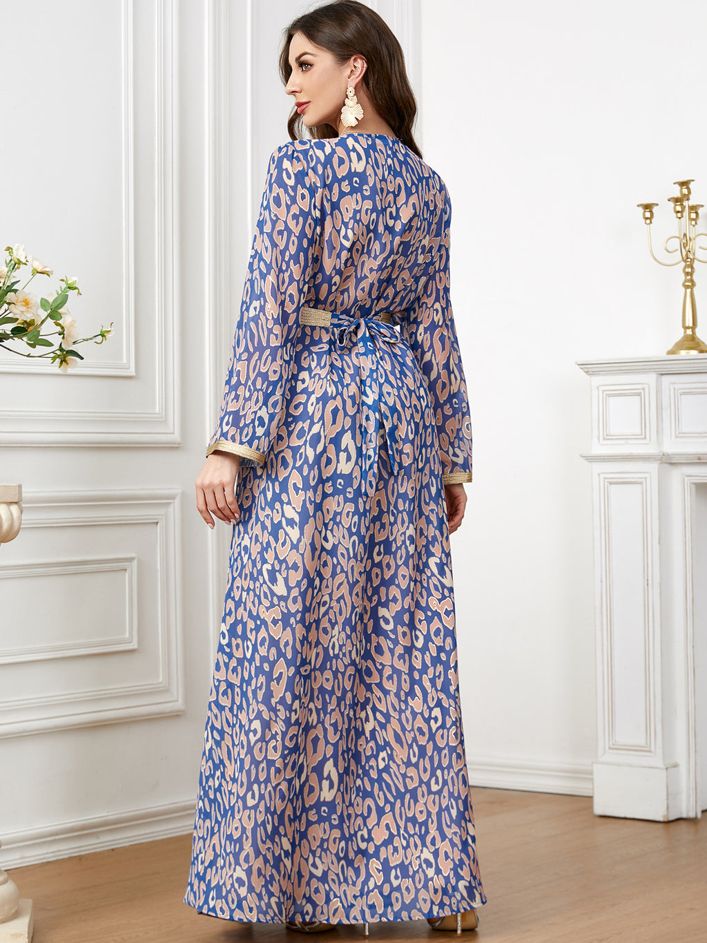 Krijg een delicate, sierlijke look met de lavendel van de dames en de roze maxi -jurk met een mantel die rond de taille cinches, bedekt met bloemenprint.