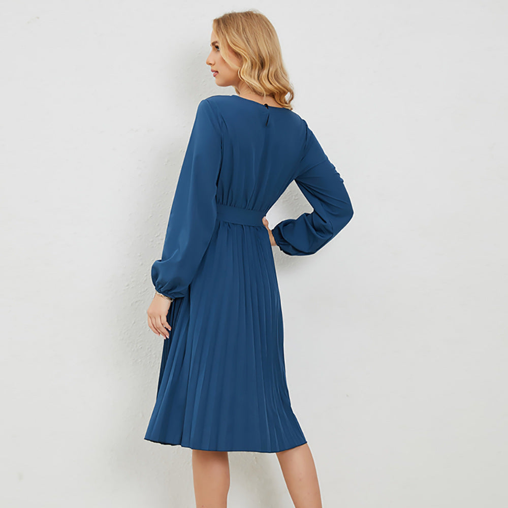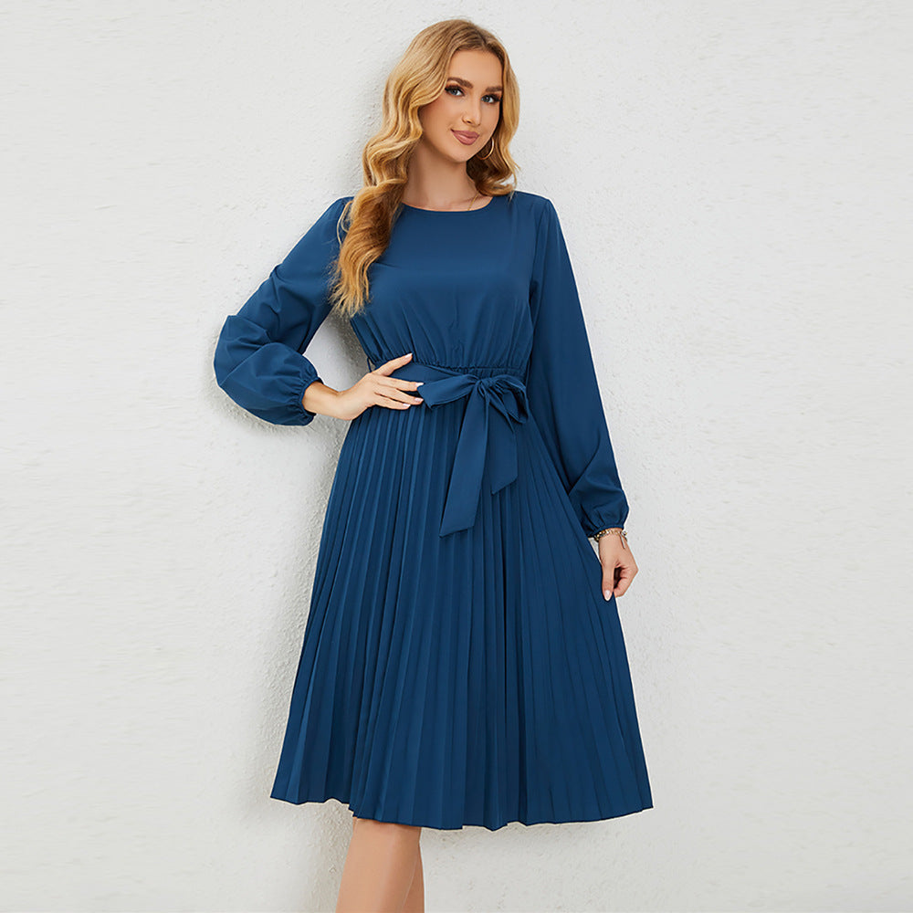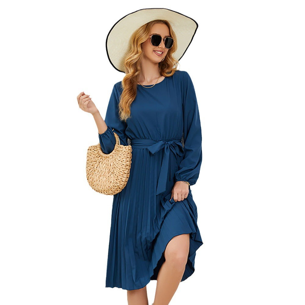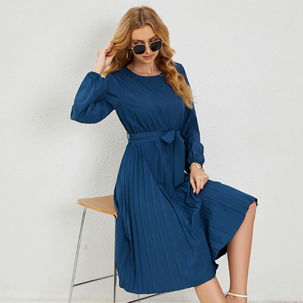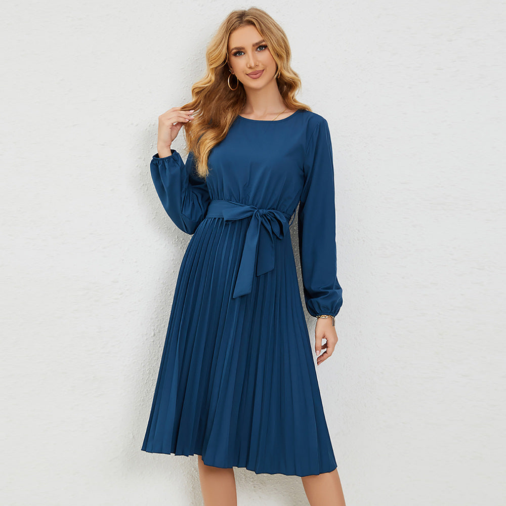 Losse passend en comfortabel, deze dames Midi -jurk met lange mouwen met vlinderdas taille heeft een cinch in het midden om het een definitie te geven voor een flatterende look.