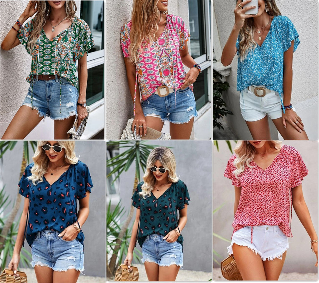 Chic Patterned Boho Chic Style Short Sleeved Top