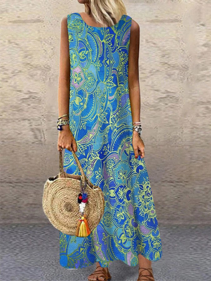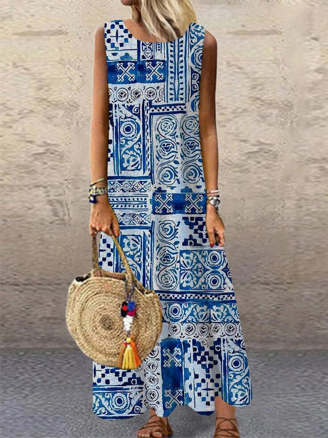 Every woman wants to look beautiful and stylish so these women's dress is crafted for those. The casual wearing dress has a round neck, full sleeveless, and natural waistline. You will look chic in this boho dress. Get your favorite women to dress for your summer wardrobe. This is a comfortable dress with quality construction. You will look stylish and beautiful wearing this woman's dress. Pair with a stylish handbag and chic high heels perfectly on bright sunny days for a fashionable and stylish impression.