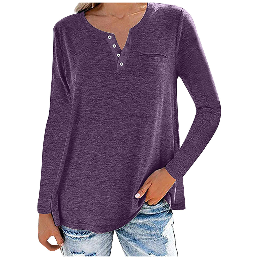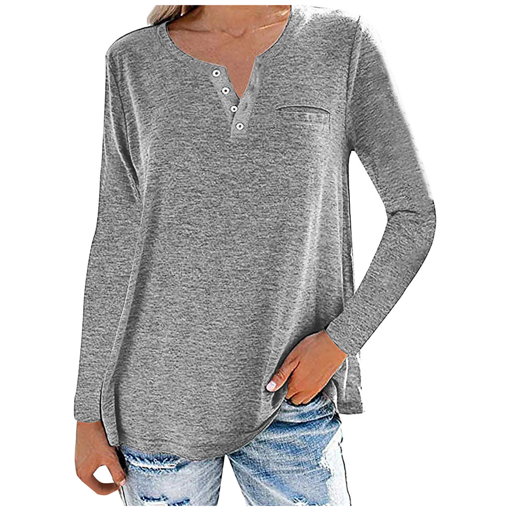 Loose Fitting Long Sleeve Buttoned Neck Top