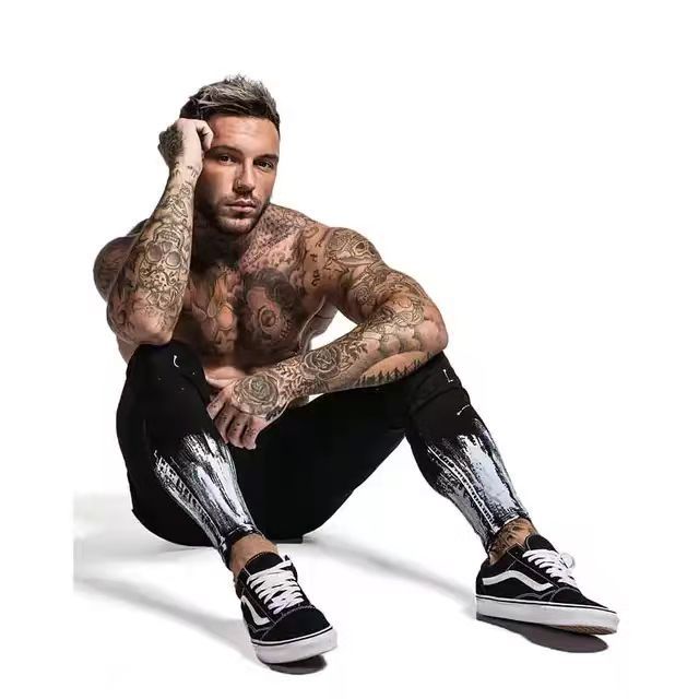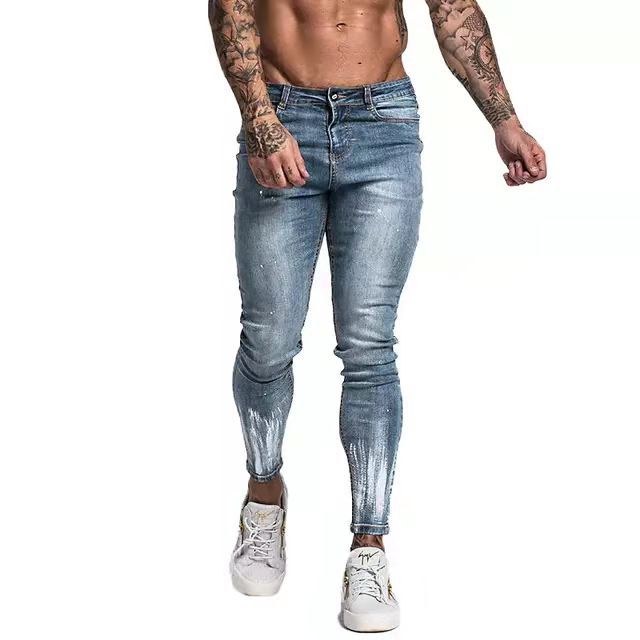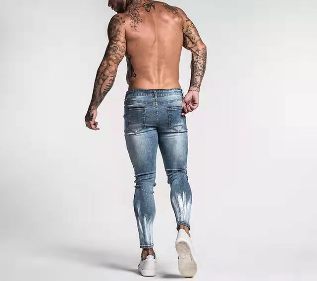 Make a statement with your streetwear when you rock the Men's Skinny Leg Denim Jeans with White Contrast featuring white paint-like texture along the shins and ankles, offering a contrast in color.