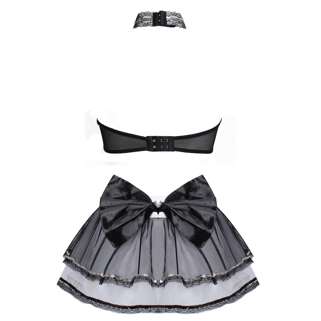 Indulge your lover's fantasies and see to their every need in the classic Sexy French Maid Lingerie Costume Set complete with wrist cuffs and a collar.