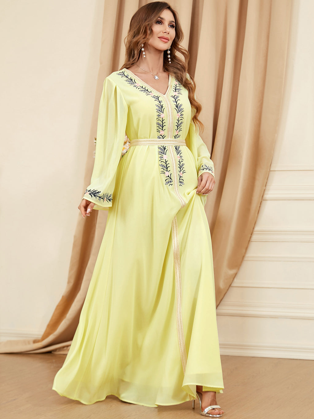 Women's Long Sleeve Maxi Dress with Shimmery Golden Details