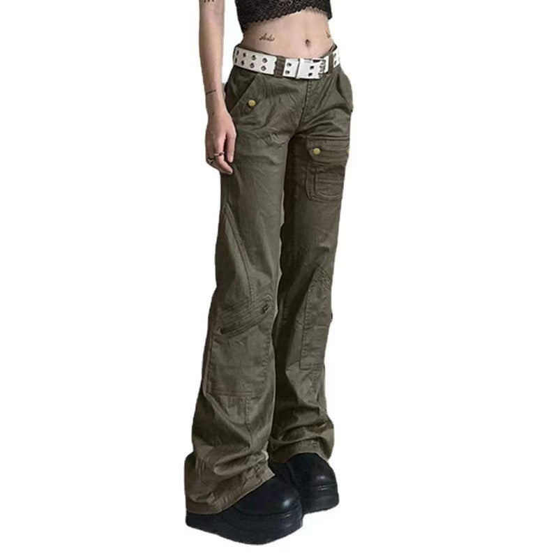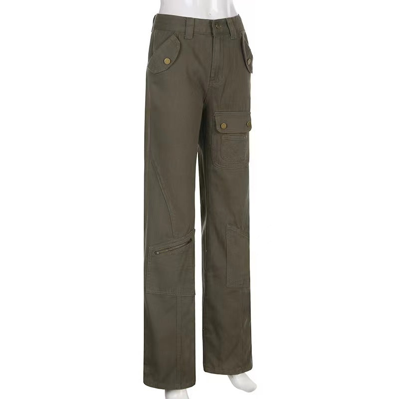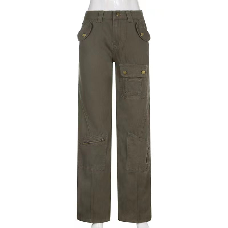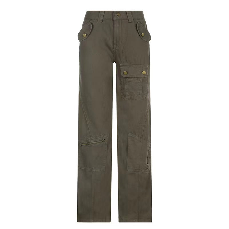 Add some urban tactical flair to your casual looks with the Women’s Straight Leg Pants with Button Snap Pockets. They come in a neutral greenish-brown hue.