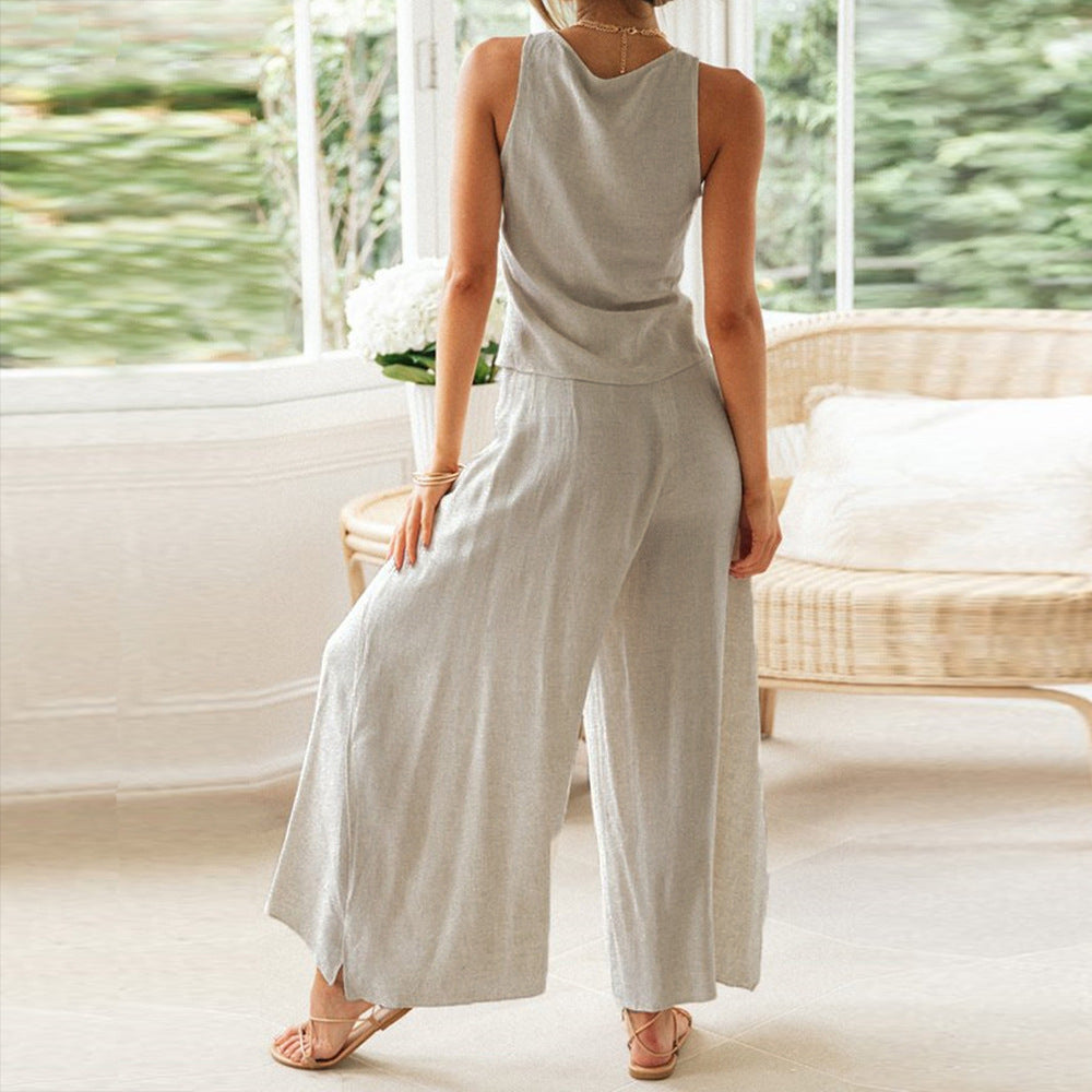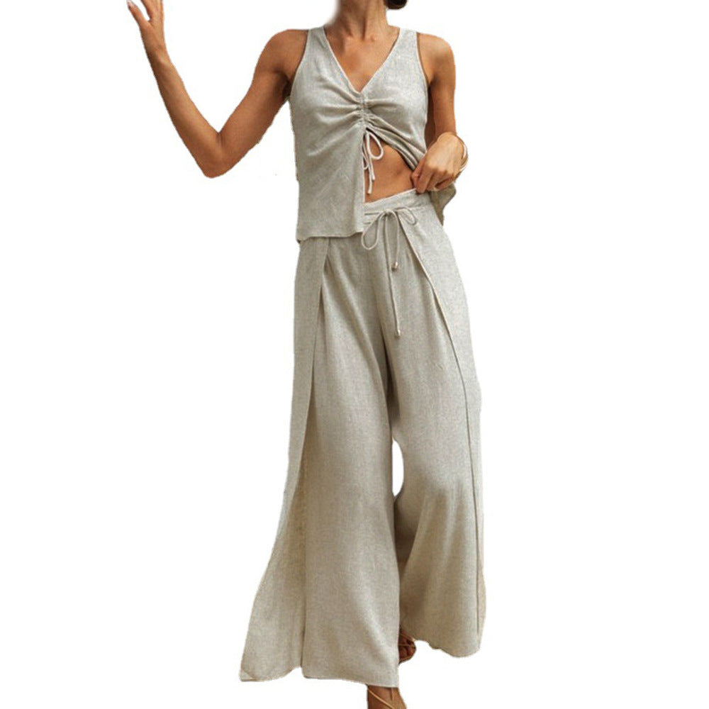 The Women's Two Piece Vest and Skirt Set is a boho-chic dream that offers the perfect blank canvas for accessorizing. It comes in a neutral color that works well with any skin tone.