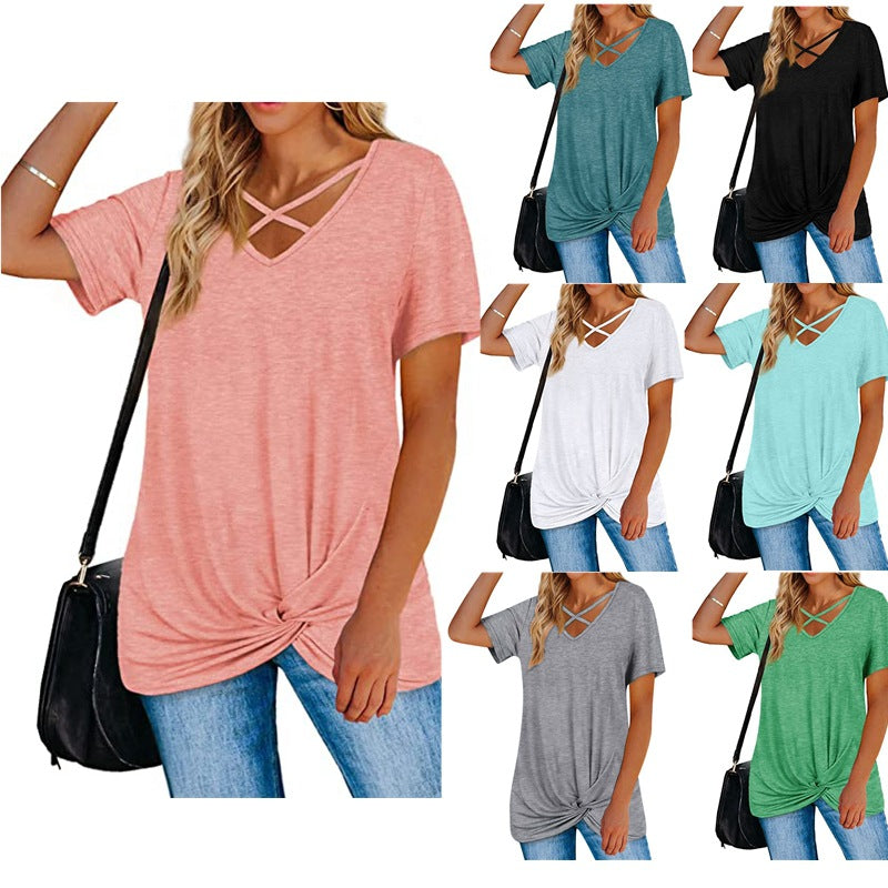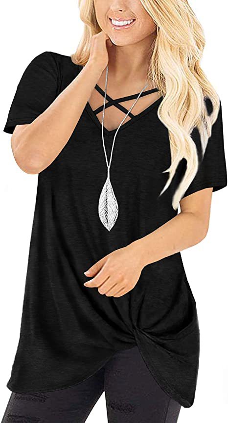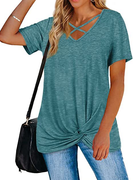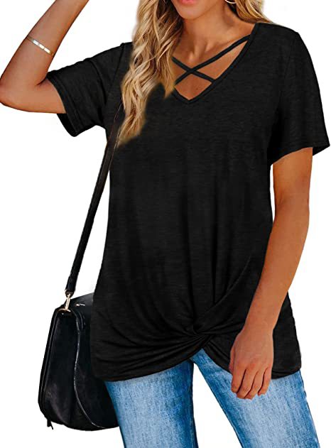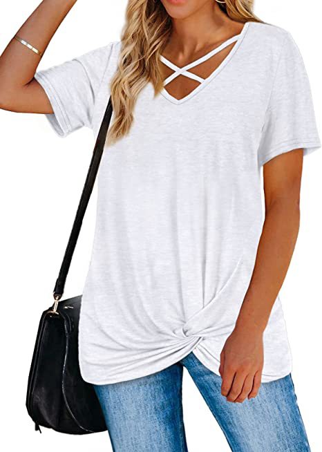 Com o nó da gravata na frente e o baú da tira, a camisa de gravata solta do tiras é para sempre fofa e moderna. É criado de algodão confortável.