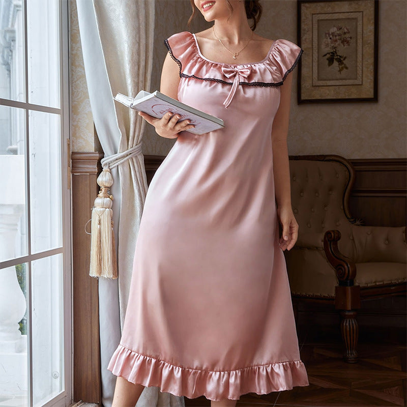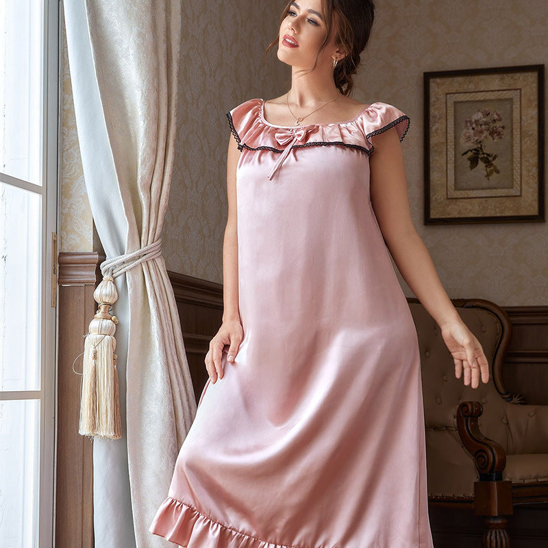Esta camisola feminina com mangas curtas e bainha com babados é um vestido de estilo clássico que o deixará sofisticado e aconchegante. É super sedoso e vem em uma linda cor rosa bebê.