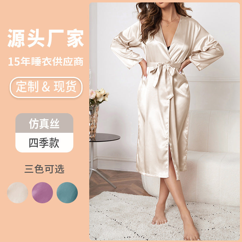 Maxi bainha maxi bainha cintura manto de seda com decote em V