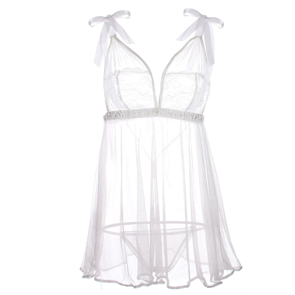 Um pescoço profundo e cortado, sutiã transparente e laços de arco tentadores nas tiras fazem com que este Peekaboo pretasse a tira do arco Babydoll uma peça sem esforço.
