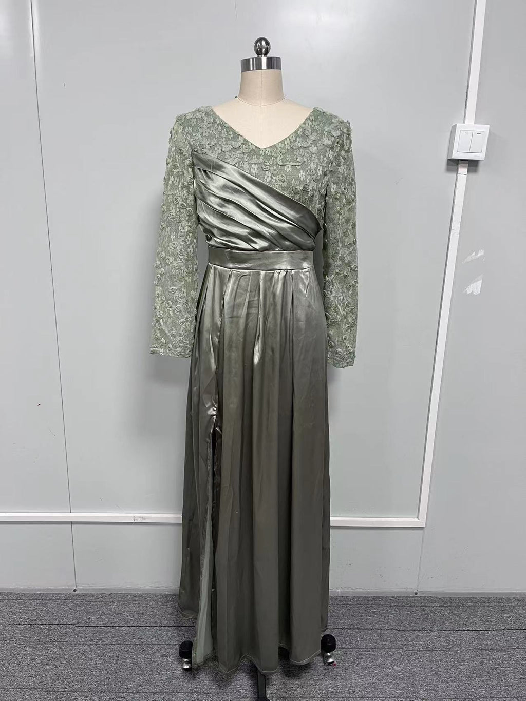 Saia em grande estilo usando o vestido maxi de mangas compridas femininas com um decote em V e fenda na coxa. Este vestido apresenta um corpete texturizado que leva o olho para a bainha sedosa e suave no comprimento maxi.