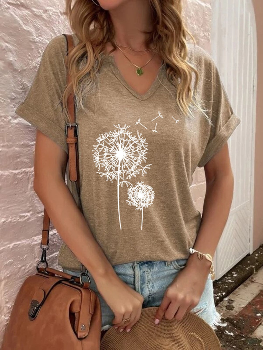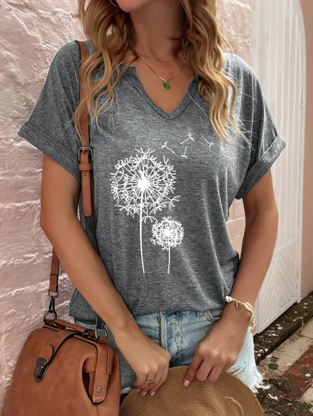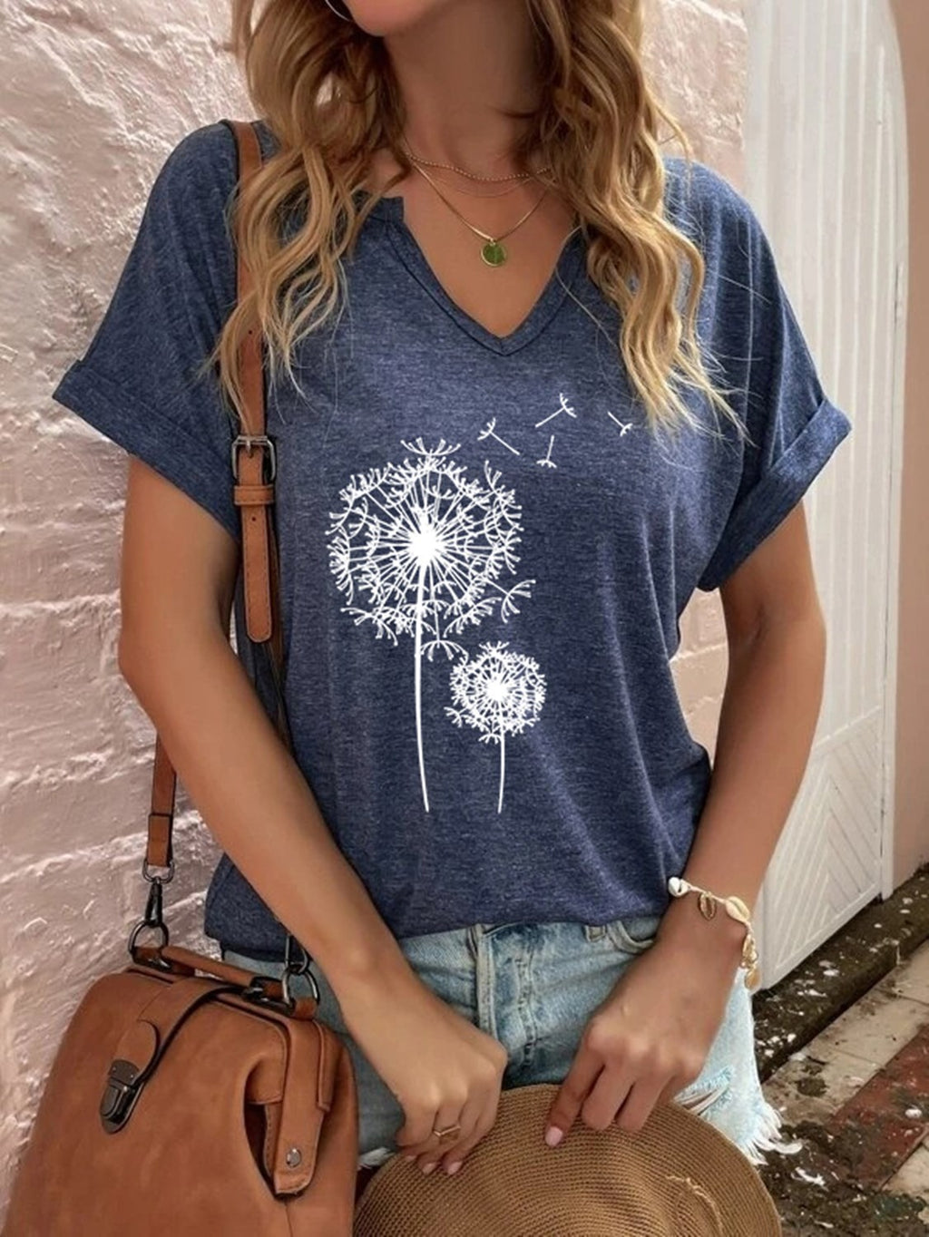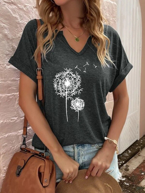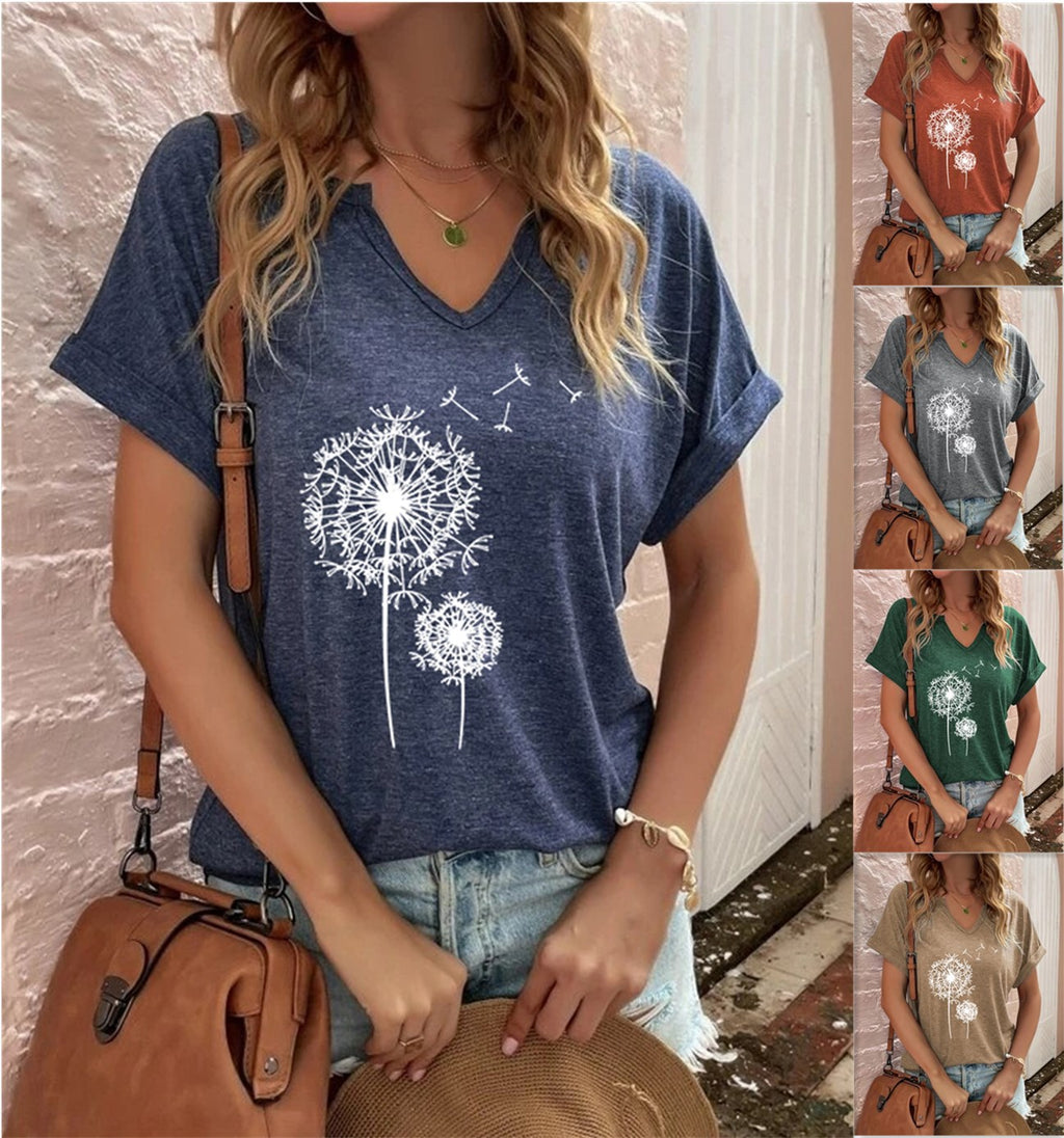 異想天開和可愛,散射的蒲公英鬆散的女子短袖T卹可愛的夏季選擇。白蒲公英在您選擇的顏色中以軟棍面料上的風在風中。
