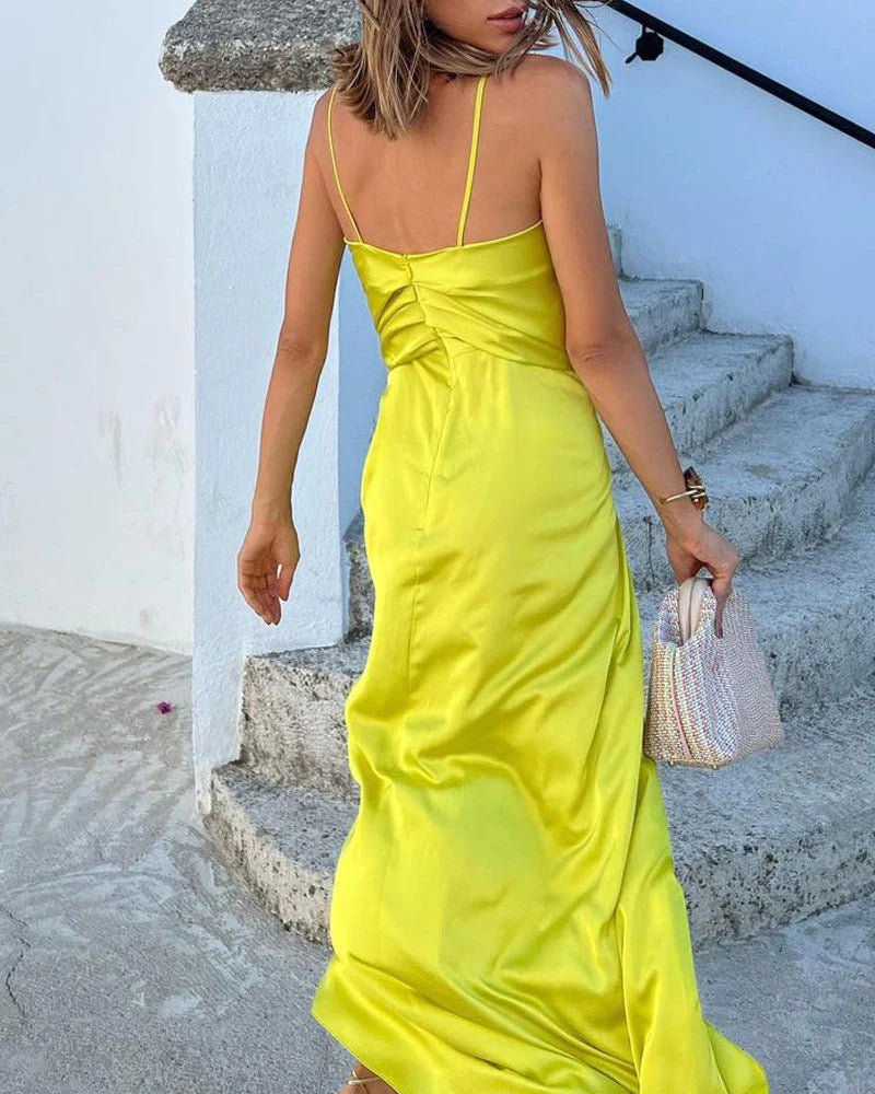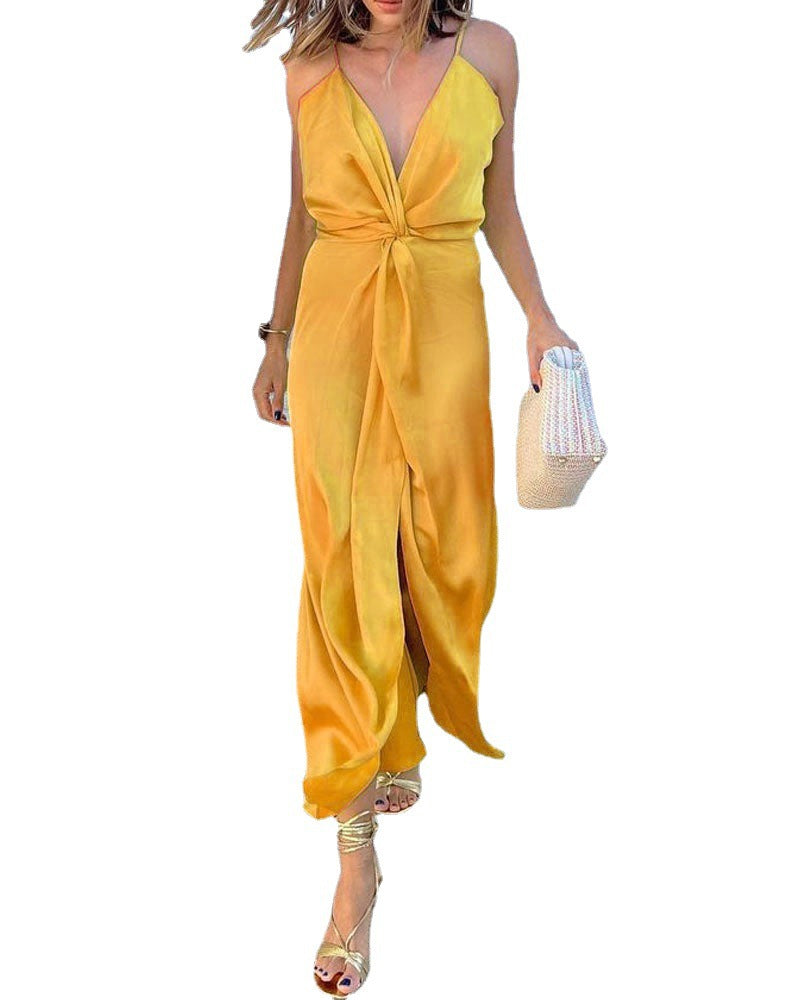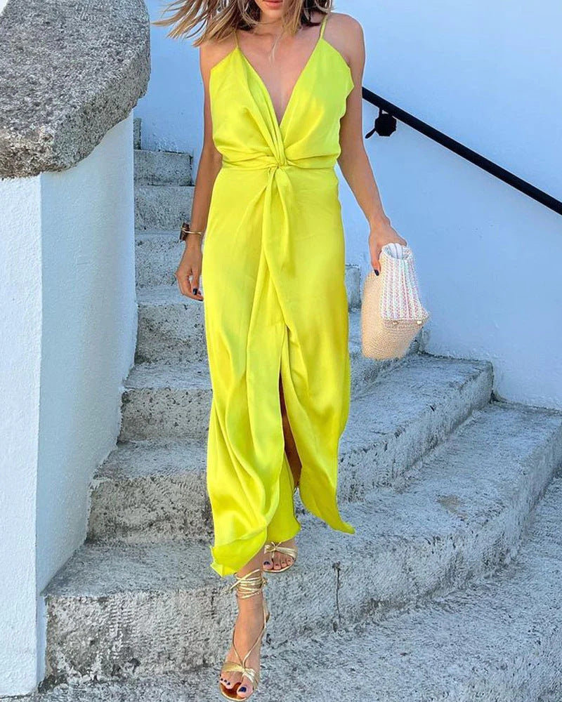當您穿著女士無袖低V領連衣裙走進房間時發表聲明。寬鬆的連衣裙可以選擇鮮豔的顏色,例如黃色,橙色和紅色。