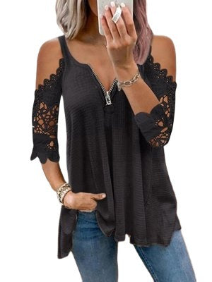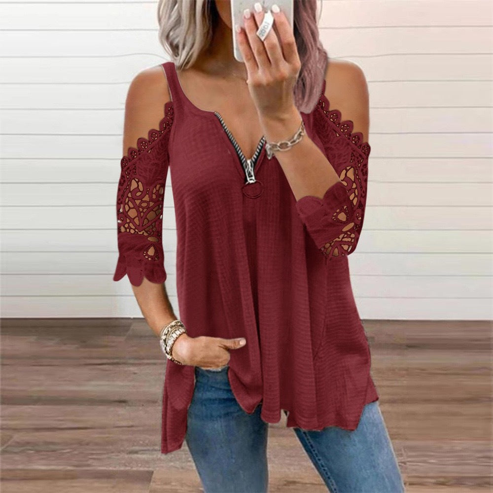 從肩帶套筒拉鍊v-neck上衣上