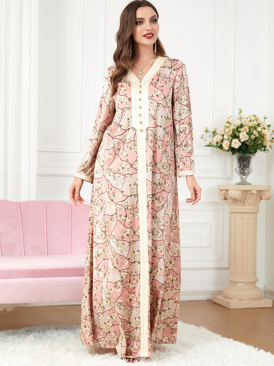 Women's Long Sleeve Floral Patterned Maxi Dress