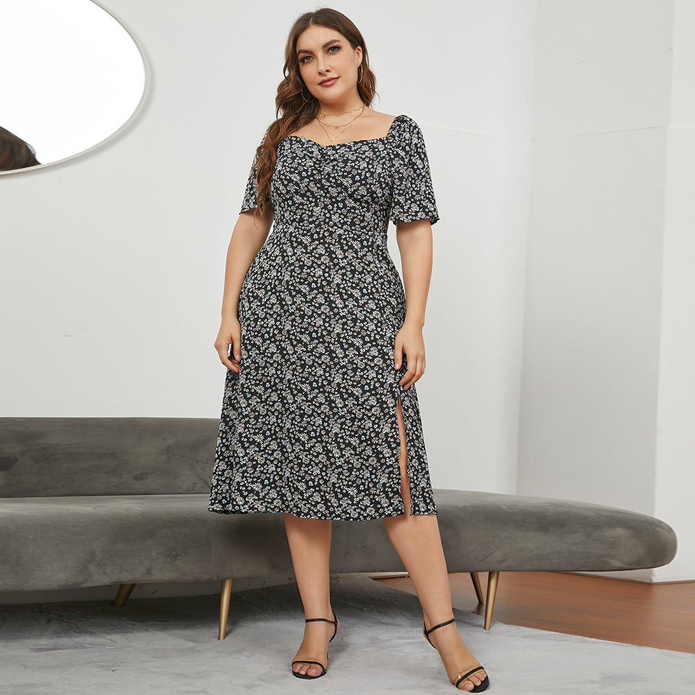 Women's Short Sleeve Midi Dress with Sweetheart Neckline